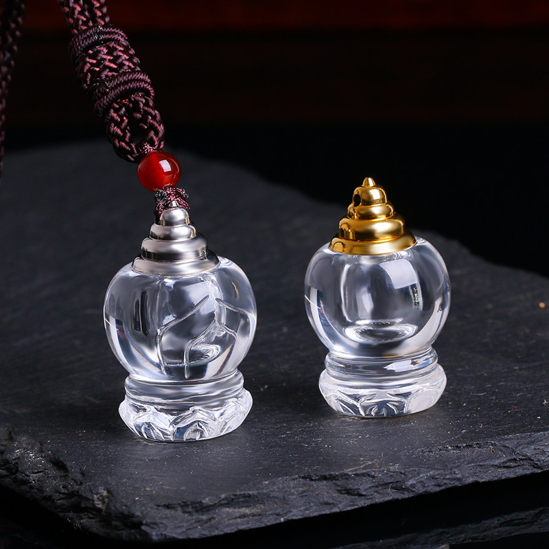 📚 天然白水晶舍利瓶塔吊坠楞严咒挂件护身符噶乌盒可打开吊坠