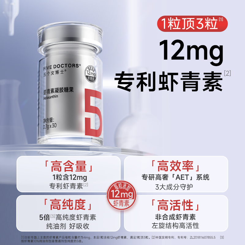 📚 五个女博士虾青素胶囊左旋虾青素口服白番茄雨生红球藻官方旗舰店
