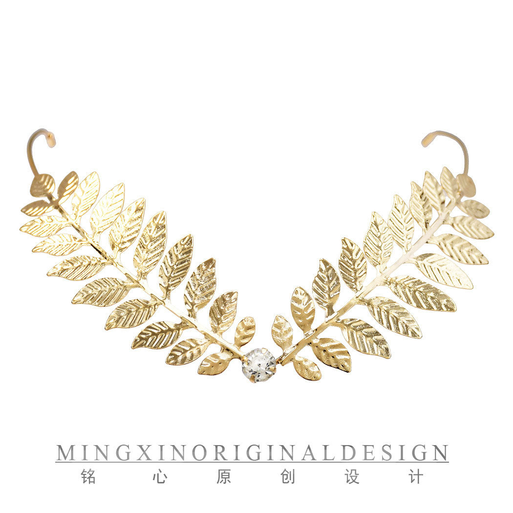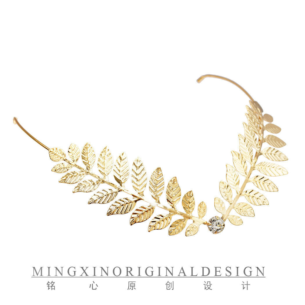 📚 欧式气质公主头轻便发饰树叶造型后挂式发箍极简百搭新娘婚礼头饰