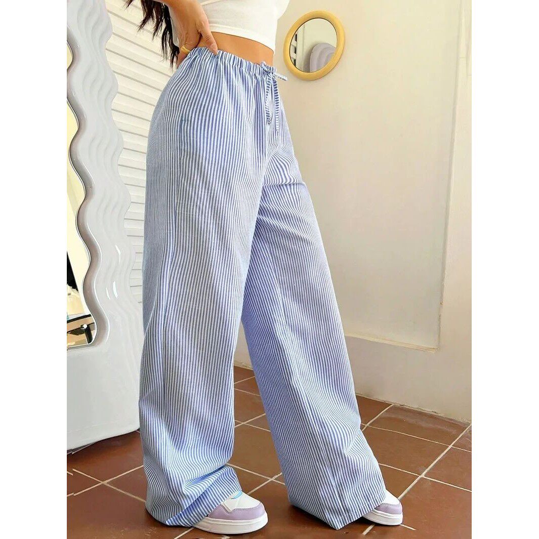 📚 Elastic waist striped casual pants for women松紧腰条纹休闲裤