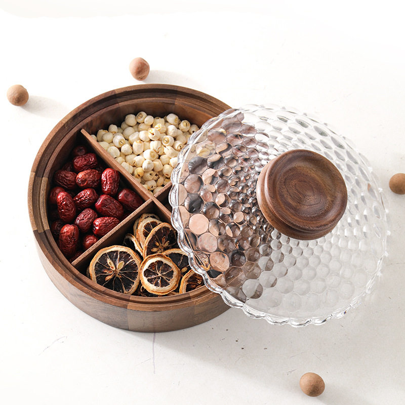 📚 胡桃木干果盒实木圆形旋转木盒新中式分格婚庆日用糖果九格盘