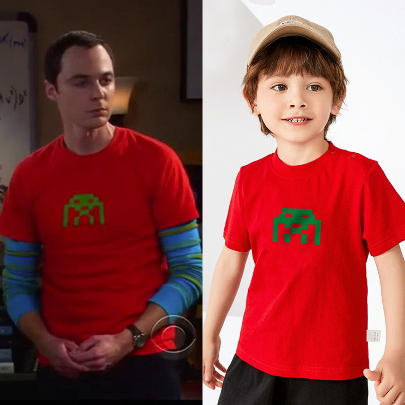 📚 谢尔顿同款外星人入侵者印花童装短袖t恤夏季极客个性亲子装半袖t