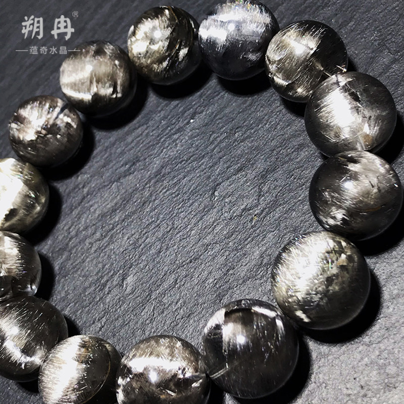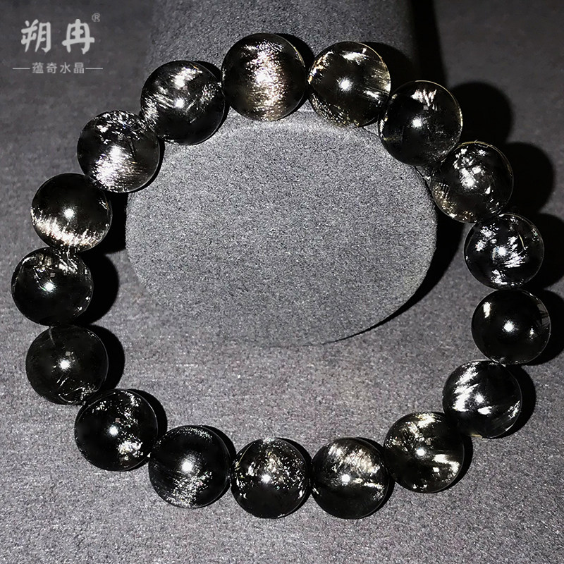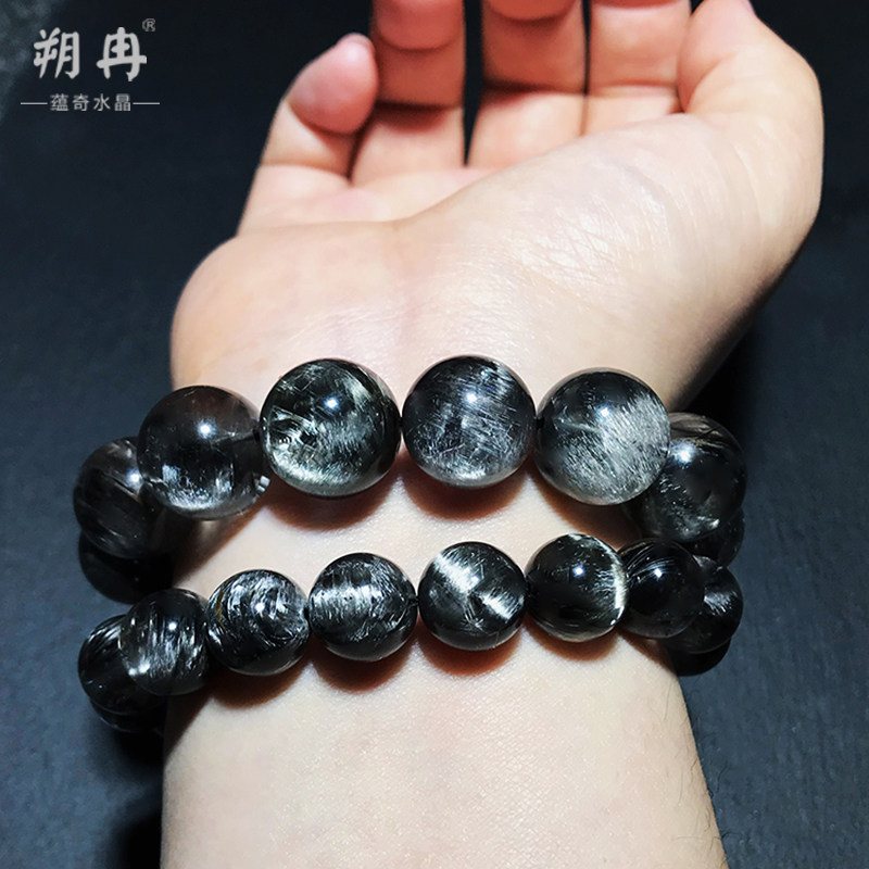 📚 收藏级天然黑银钛晶手链黑发晶钛晶猫眼男女单圈多圈白发水晶手串