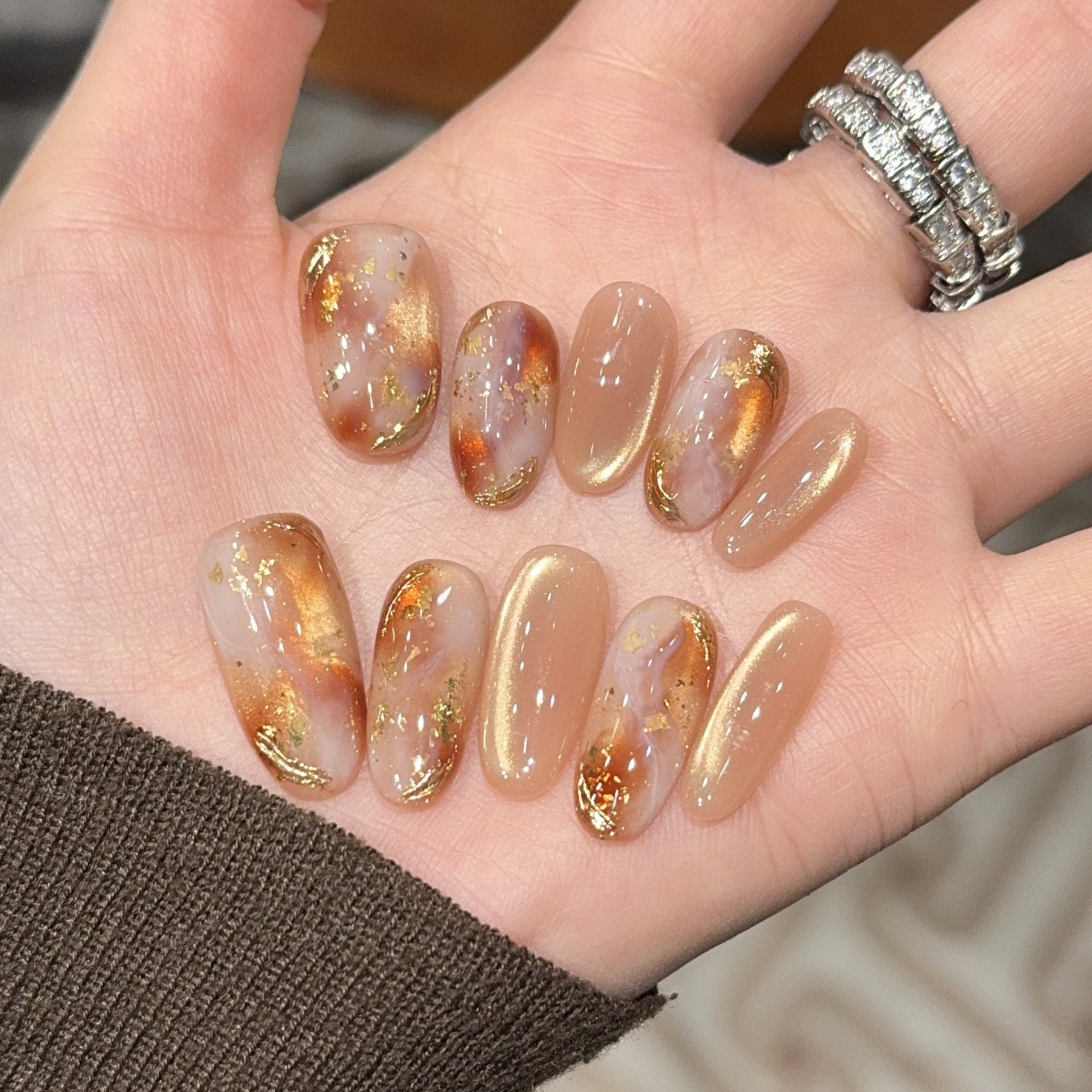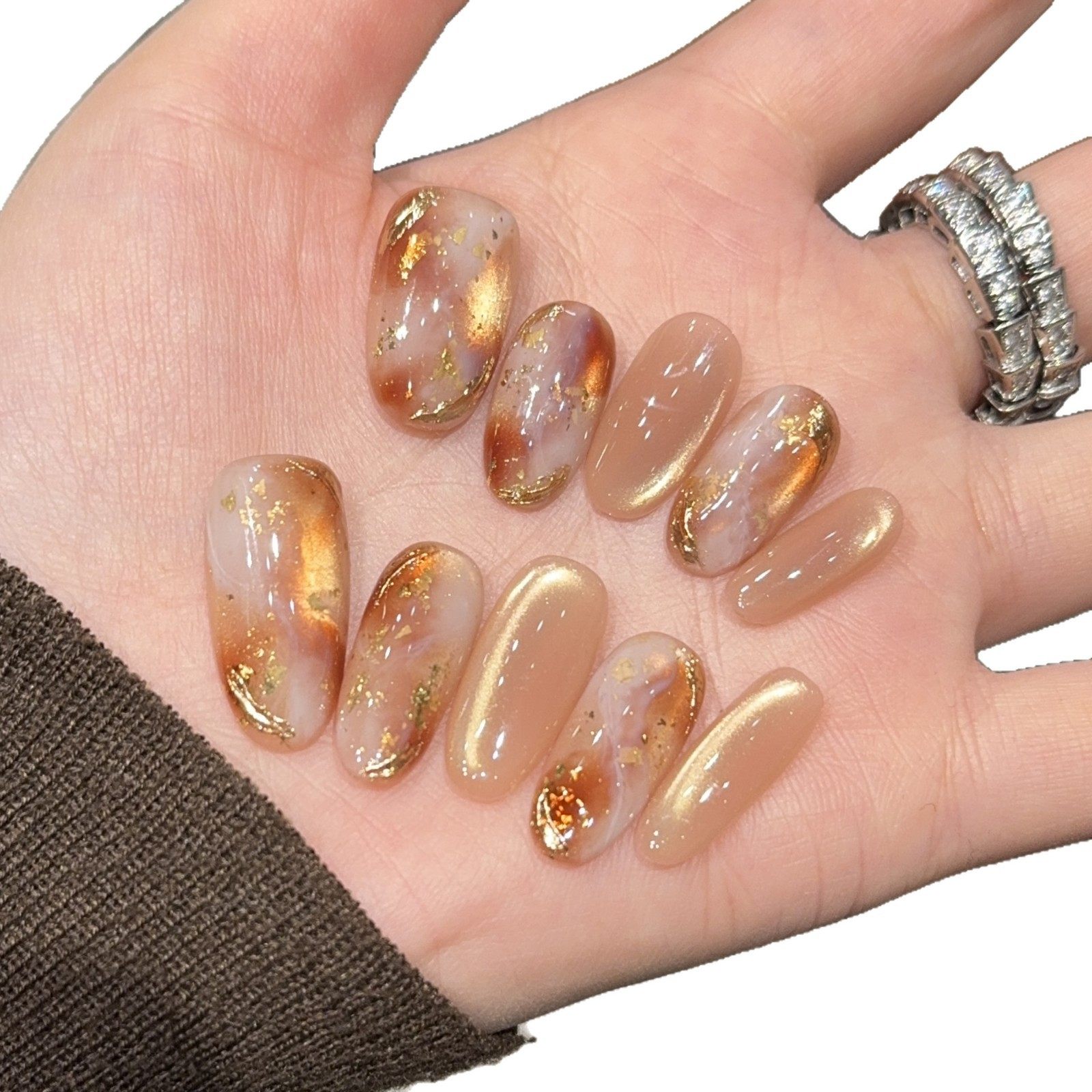 📚 【黄昏疏影】琥珀晕染猫眼ins风纯手工穿戴甲显白美甲贴片假指甲