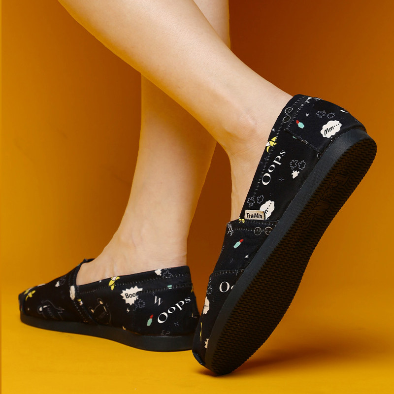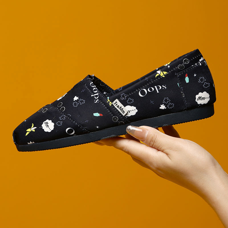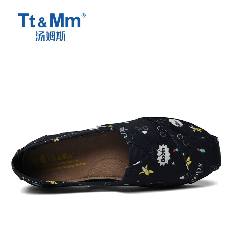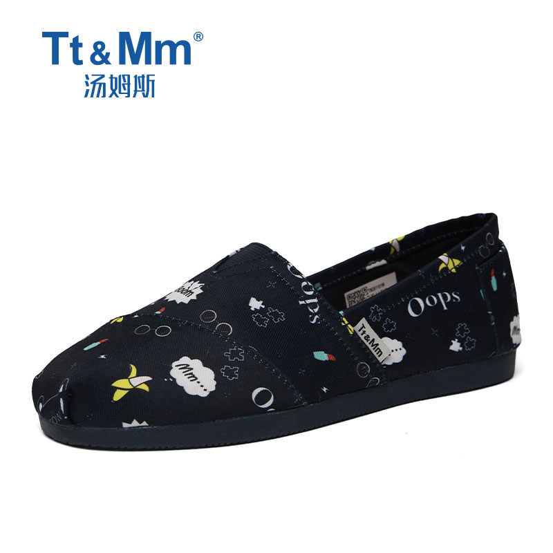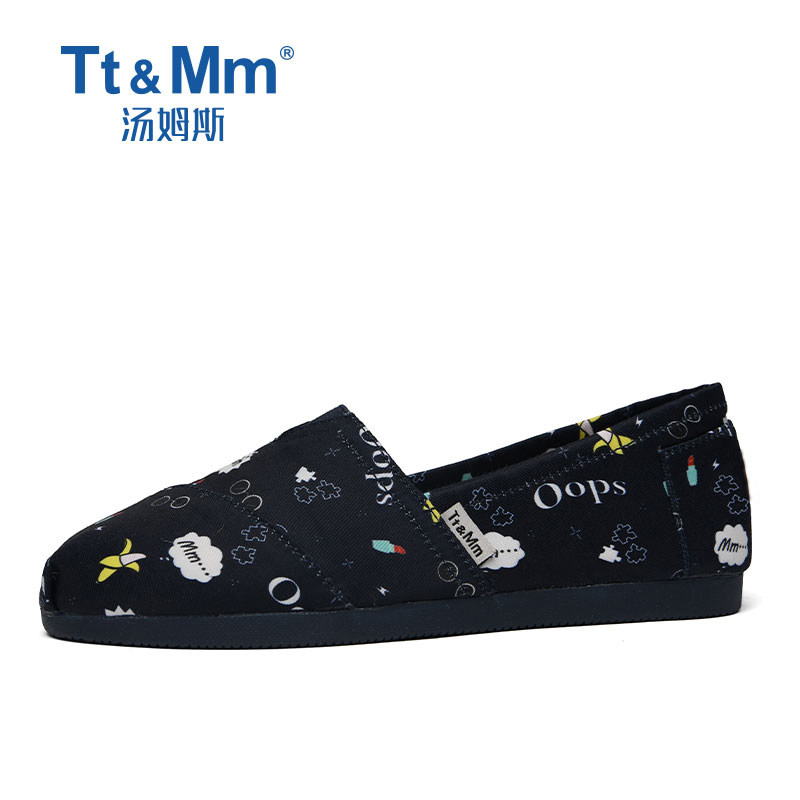 📚 Tt&Mm/汤姆斯女鞋涂鸦时尚低帮圆头帆布鞋软底一脚蹬懒人百搭布鞋
