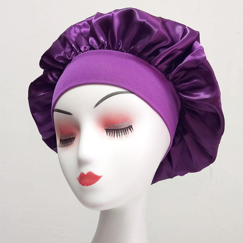 📚 纯色宽边弹力色丁睡帽女睡觉发帽薄款透气防乱发时尚休闲发套圆顶
