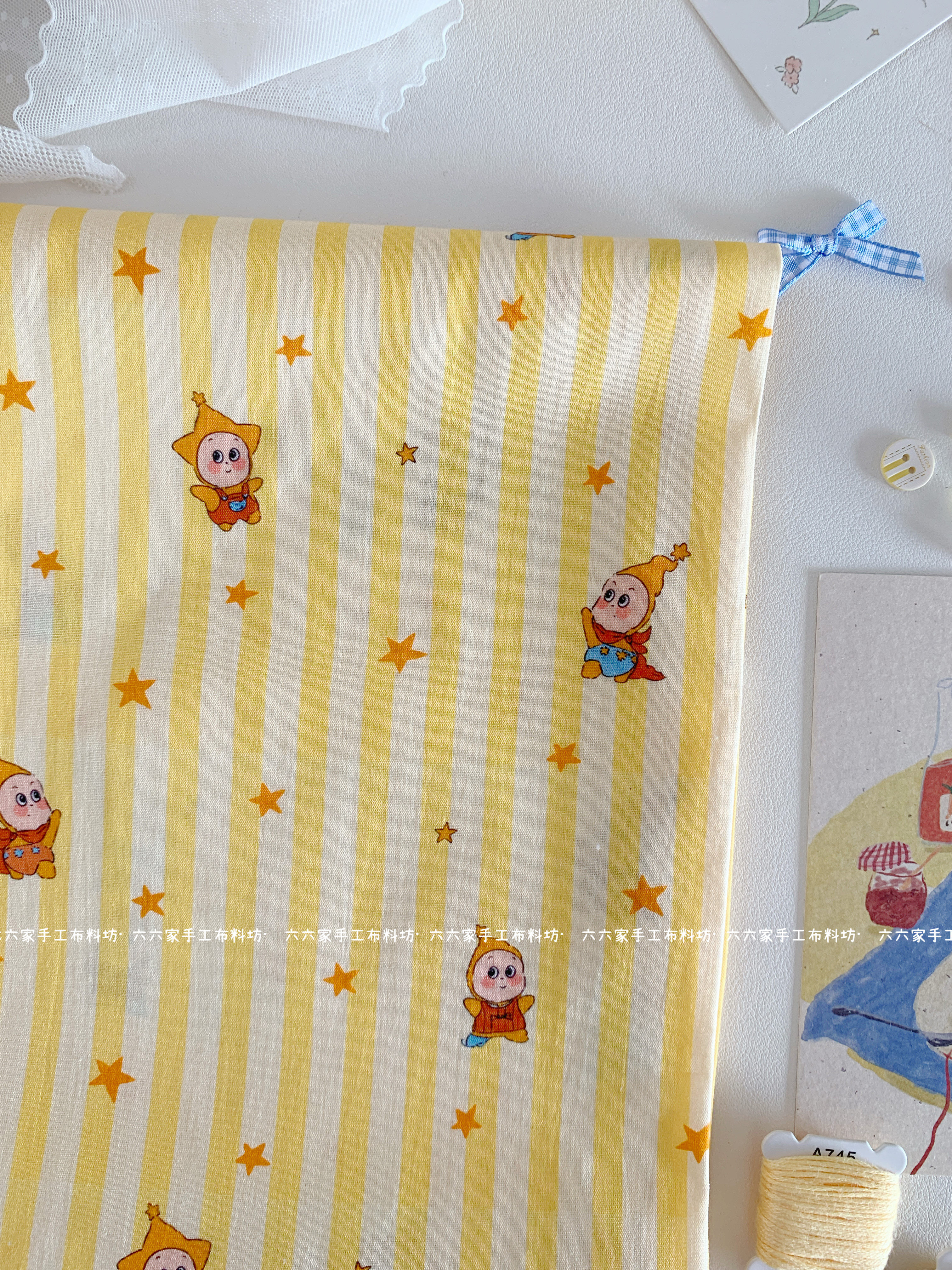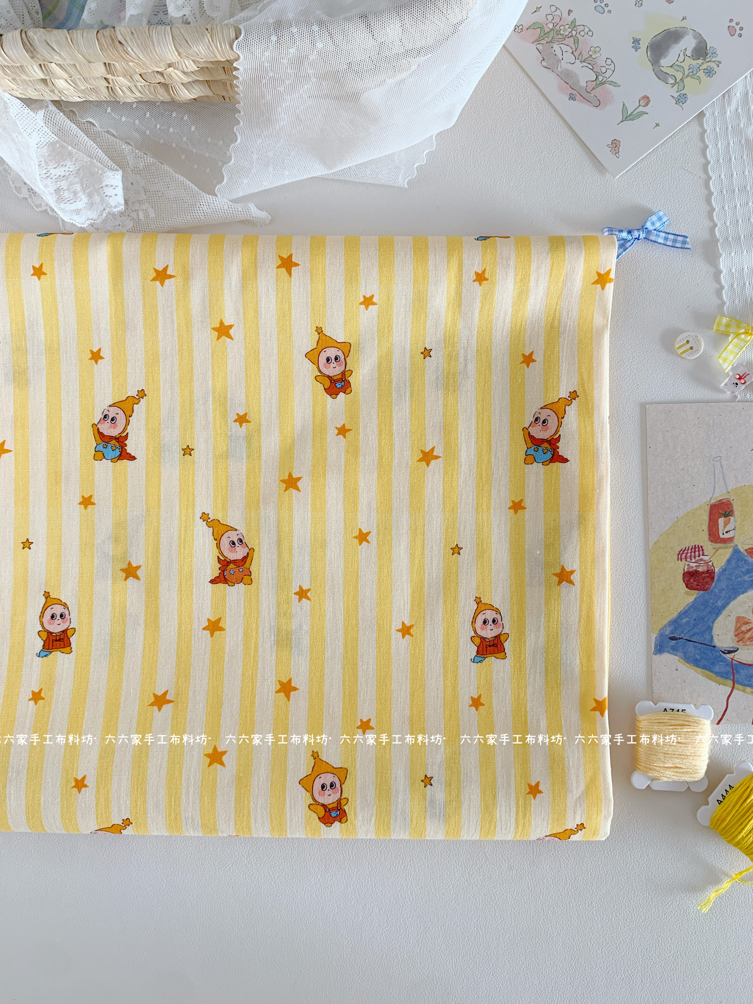 📚 全棉40支印花布料条纹可爱星星人服装发饰包包发圈手工diy布料
