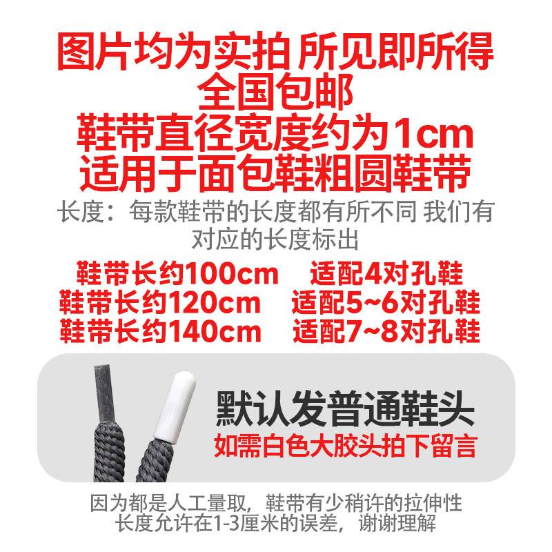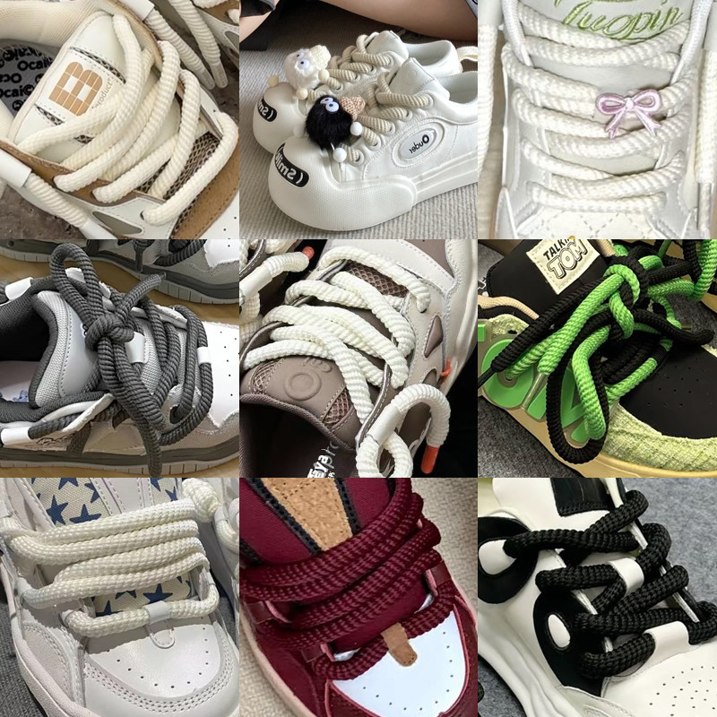 📚 适配ouder鞋绳男款女款大头鞋面包鞋粗鞋带lee鞋带麻绳圆形米白色