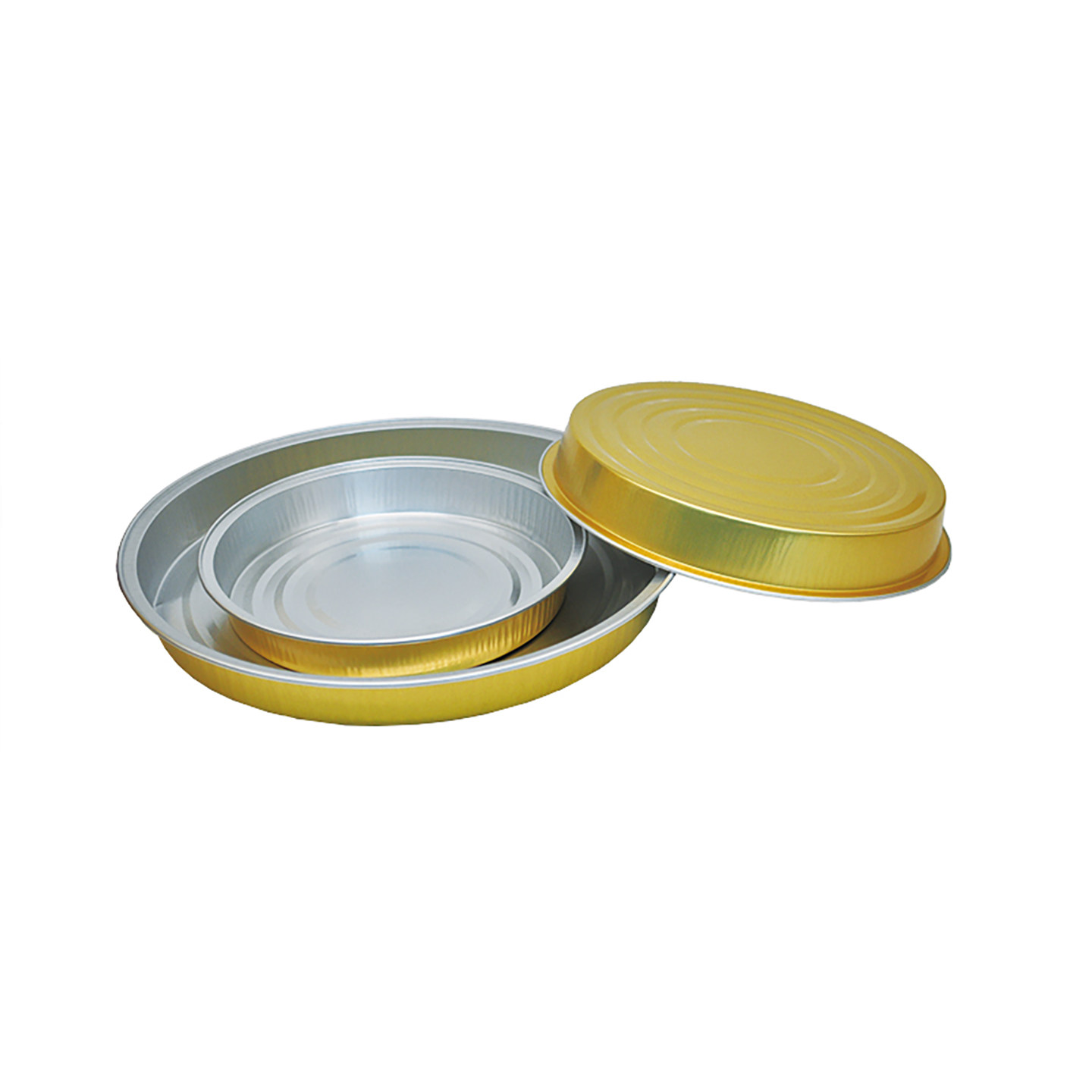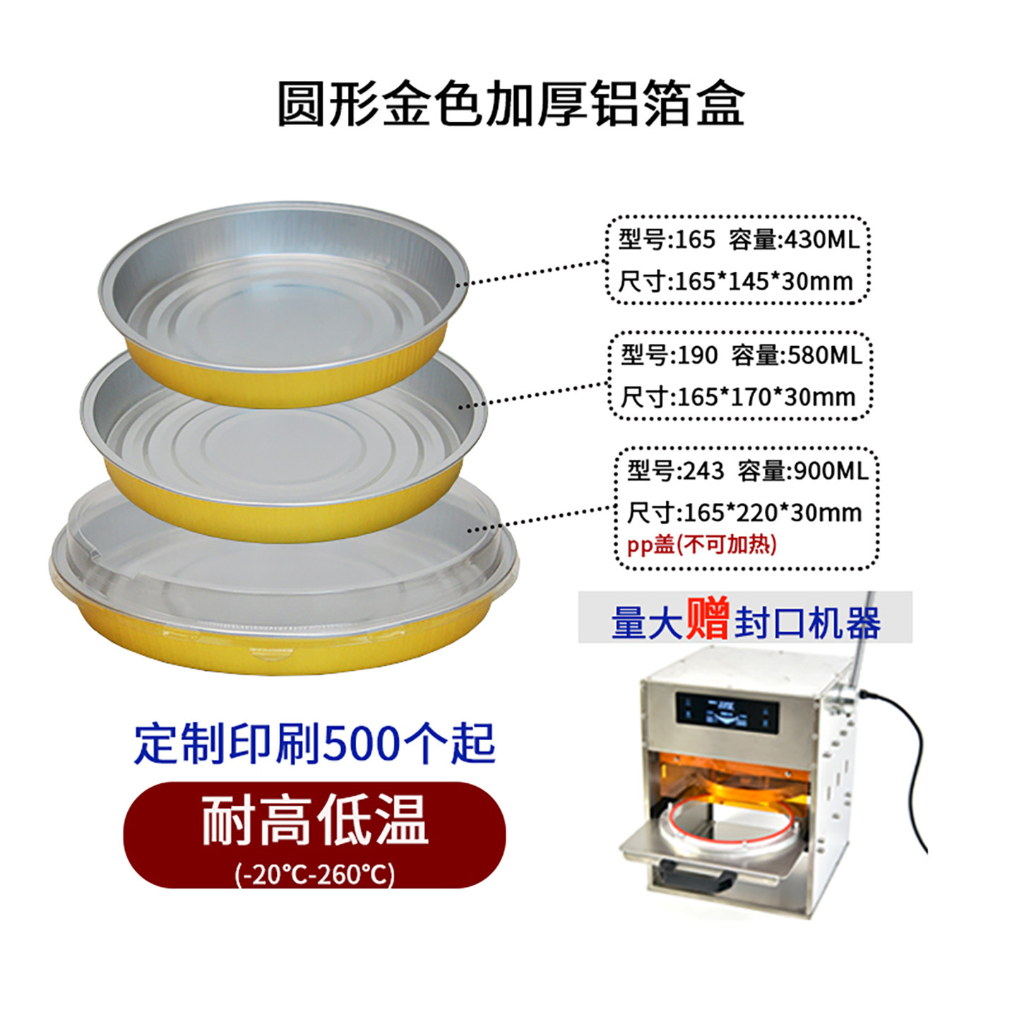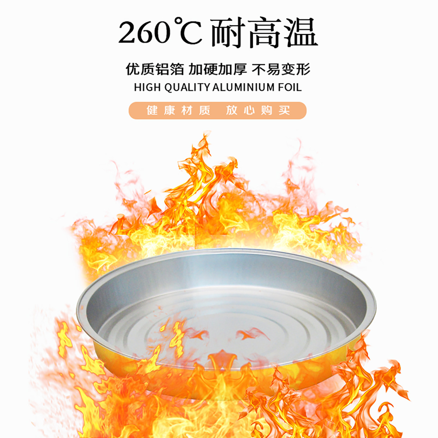 📚 165金色圆形浅盘加厚铝箔盒披萨寿司打包空气炸锅锡纸盒烘焙烤盘