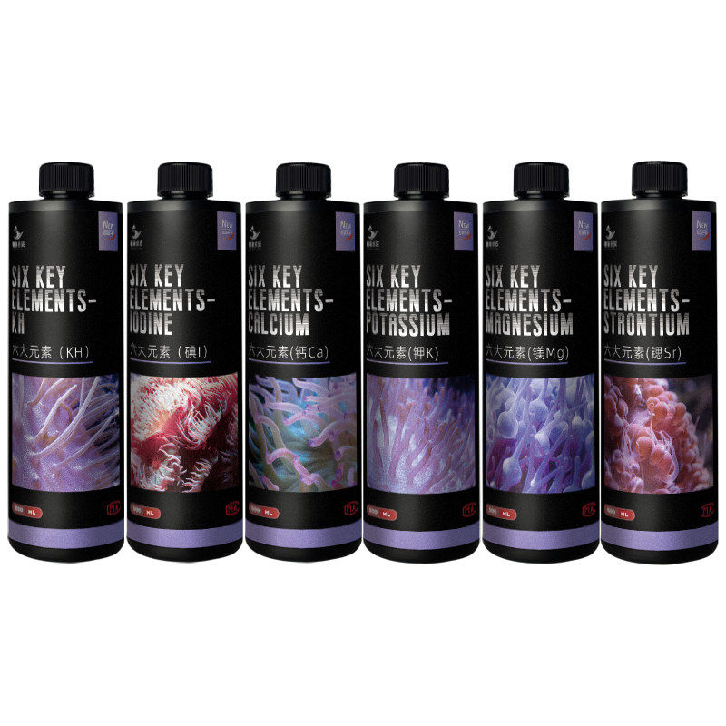 📚 粤海六大元素KH钙镁碘锶钾珊瑚增色海水缸补充促进生长发色滴定液