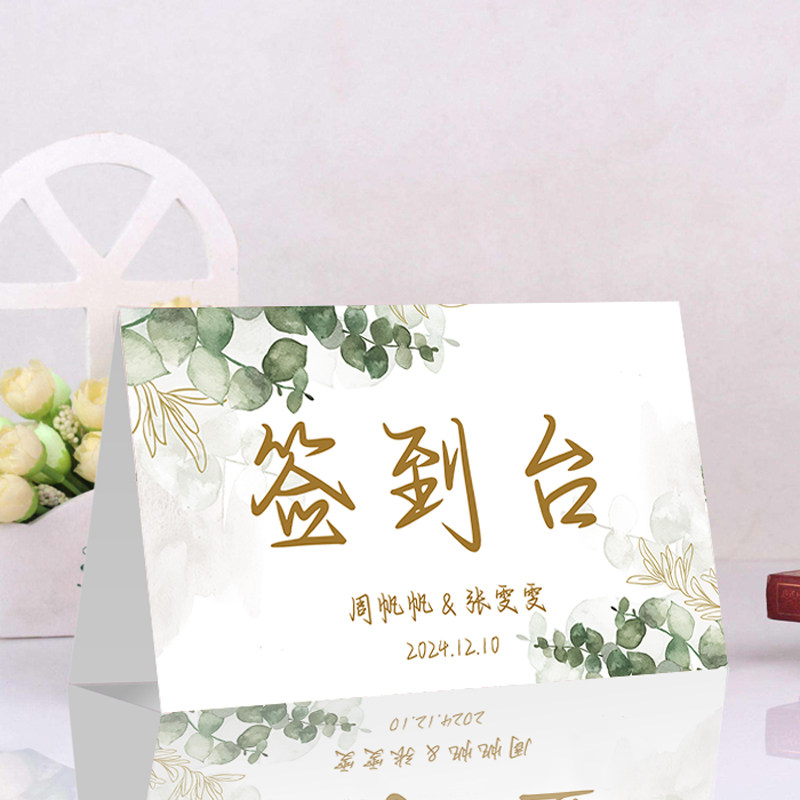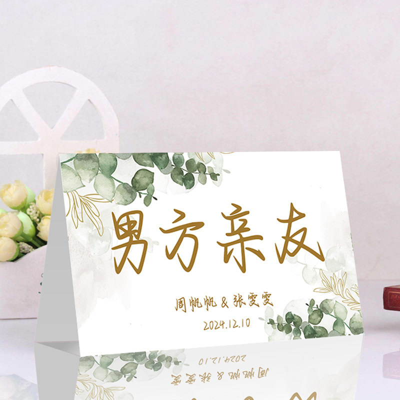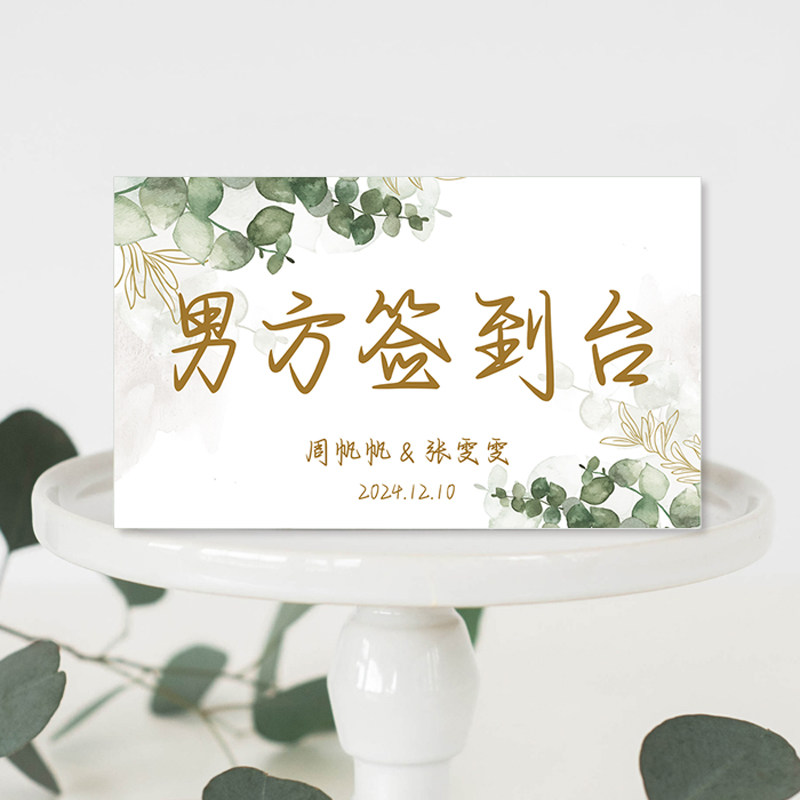 📚 个性定制尤加利叶签到台男方亲友桌女方亲友桌男方签到女方签到卡