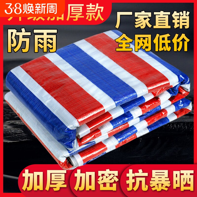 📚 加厚三色彩条布防水布油布防雨布篷布遮雨布围挡塑料布遮阳遮盖