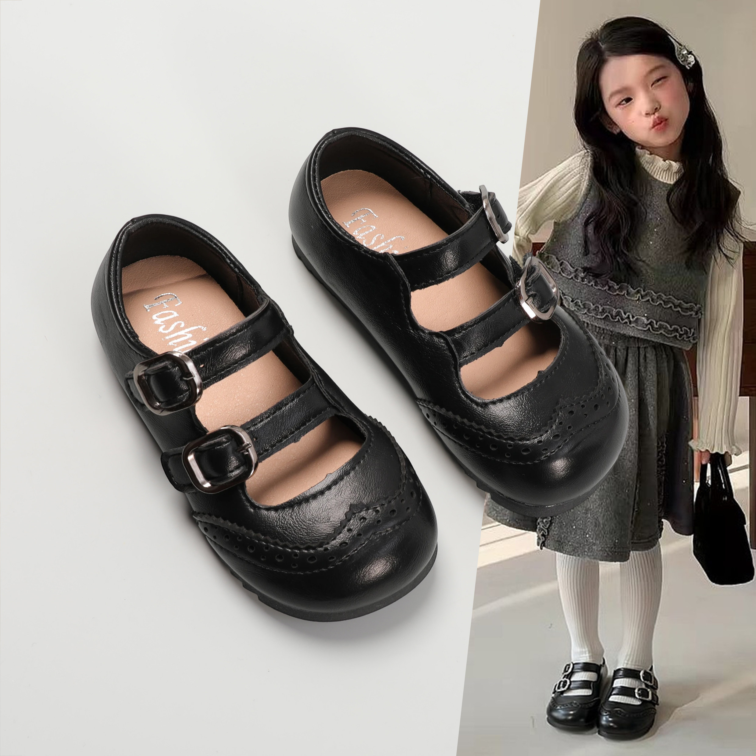 📚 女童英伦风布洛克小皮鞋2026春季新款中大童小童公主鞋儿童福乐鞋