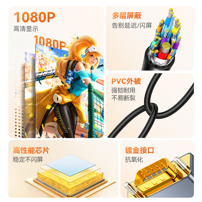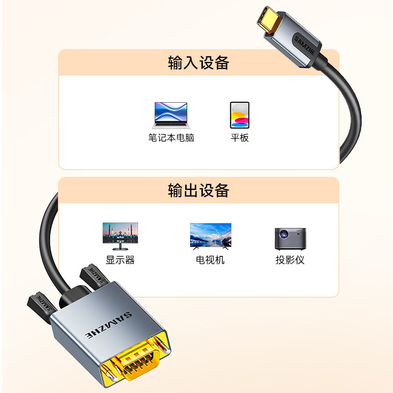 📚 Type-C转VGA线1.5米 雷电3/4转换器USB-C转接头拓展扩展高清投屏适用C口笔记本电脑手机iPad平板