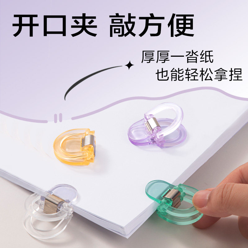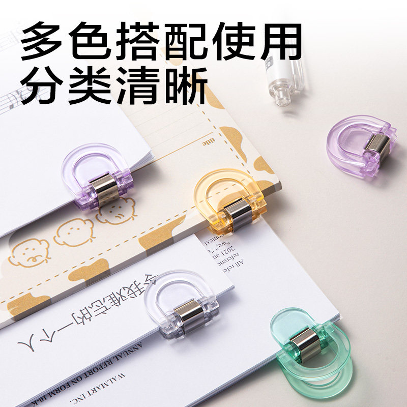 📚 得力彩色趣味透明小夹子文具创意资料夹初高中试卷文件收纳夹办公室高颜值票据夹无痕边角夹封口夹纸票据夹
