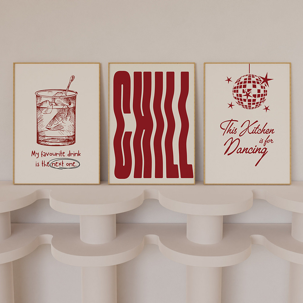 📚 Trendy Retro Wall Set Prints Aesthetic Bar Cart Art Poster