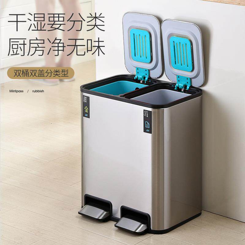 📚 分类垃圾桶家用厨房上海干湿分离不锈钢大号脚踏客厅共用带盖双桶