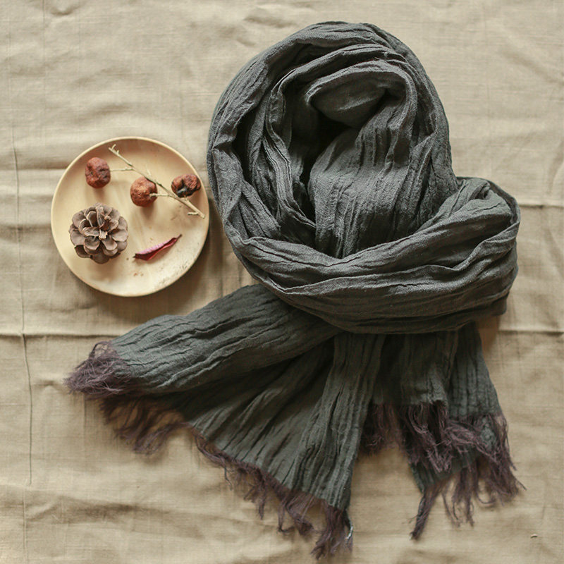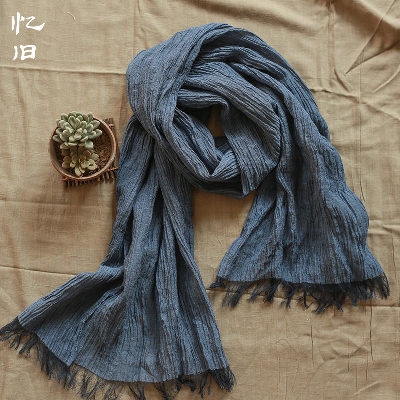 📚 忆旧2021春冬新款文艺复古披肩长款微薄色织亚麻围巾长180*宽60cm