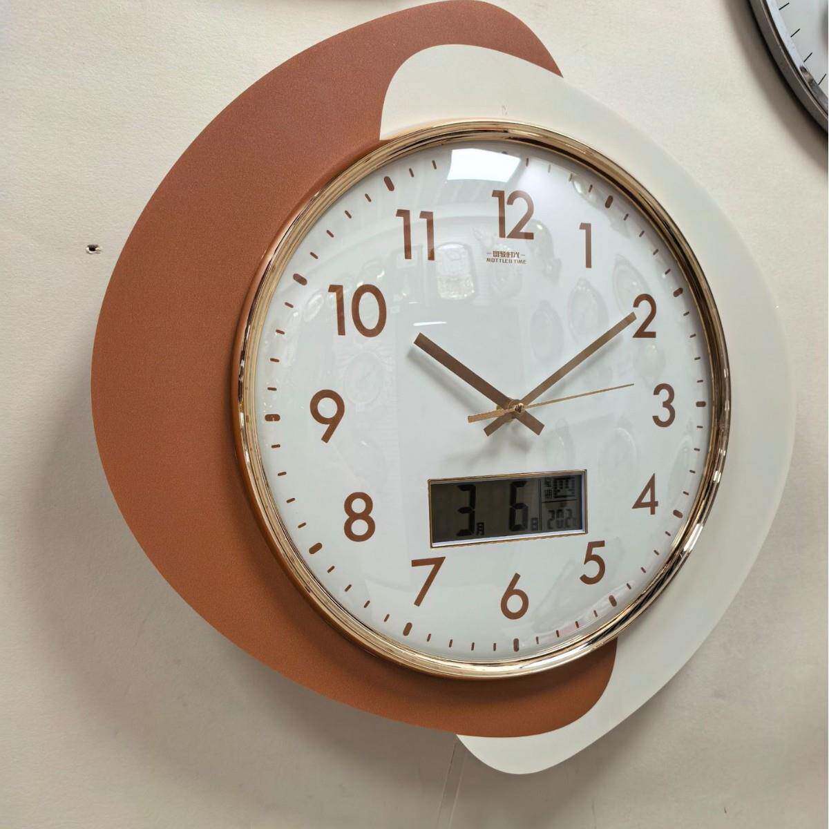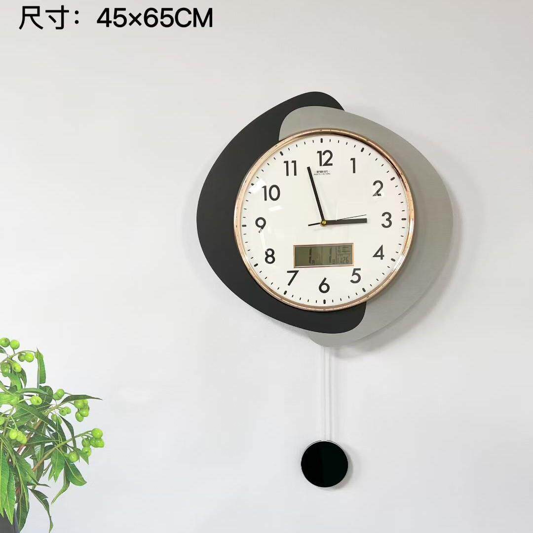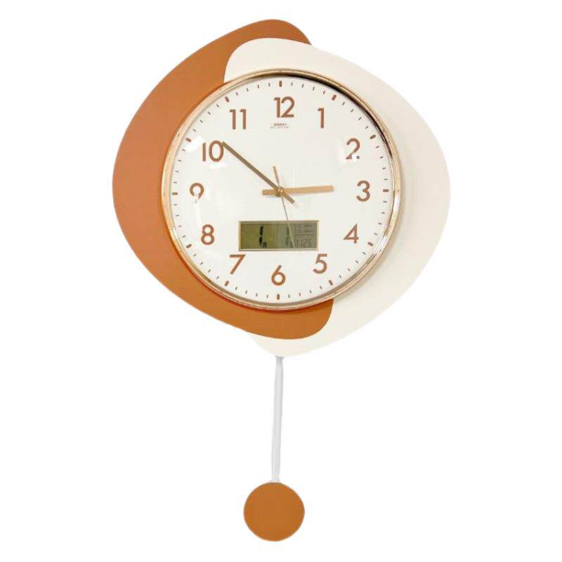 📚 免打孔现代奶油风挂钟家用静音简约客厅钟表摇摆时钟创意石英钟
