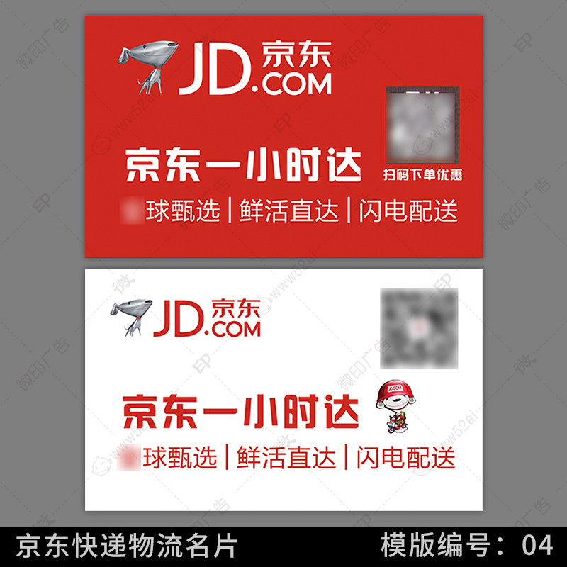 📚 京东物流快递员名片制作pvc卡订做铜版纸二维码打印宣传物料定制