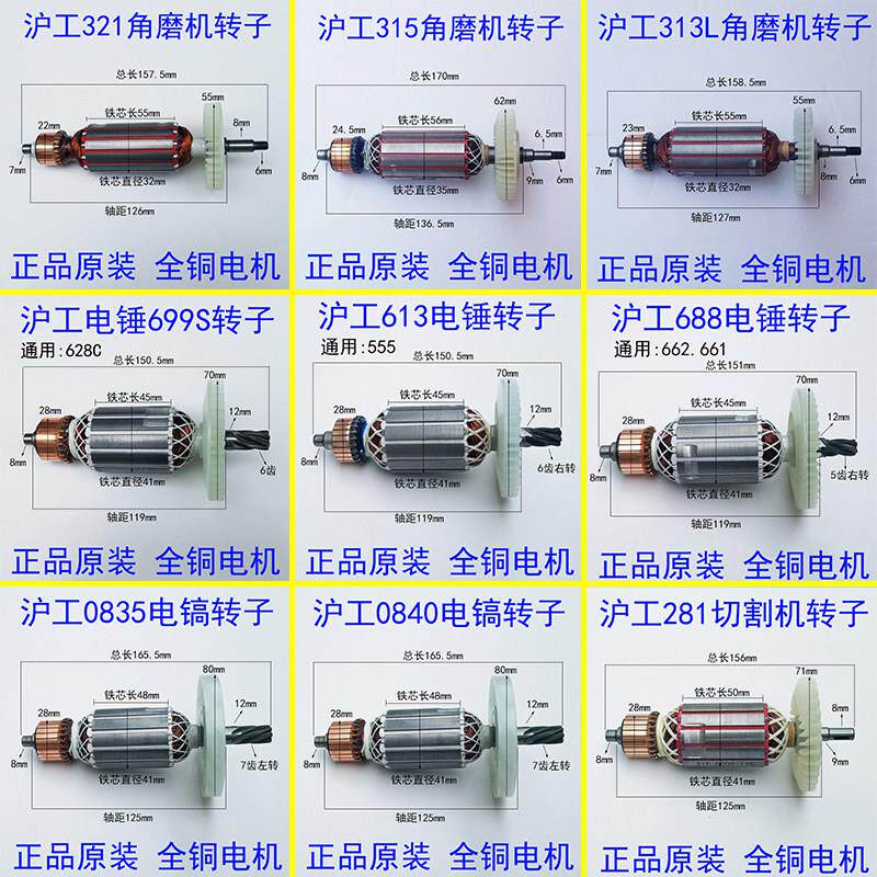 📚 沪工原装电鎚钻699S转子云石机角磨机电镐321转子电机电动工具配