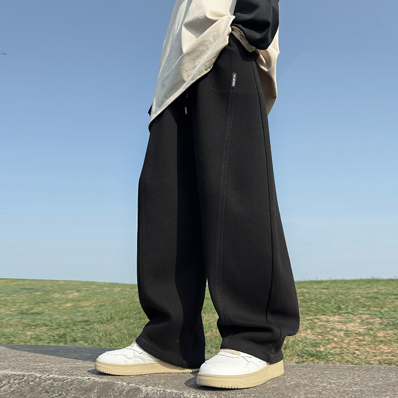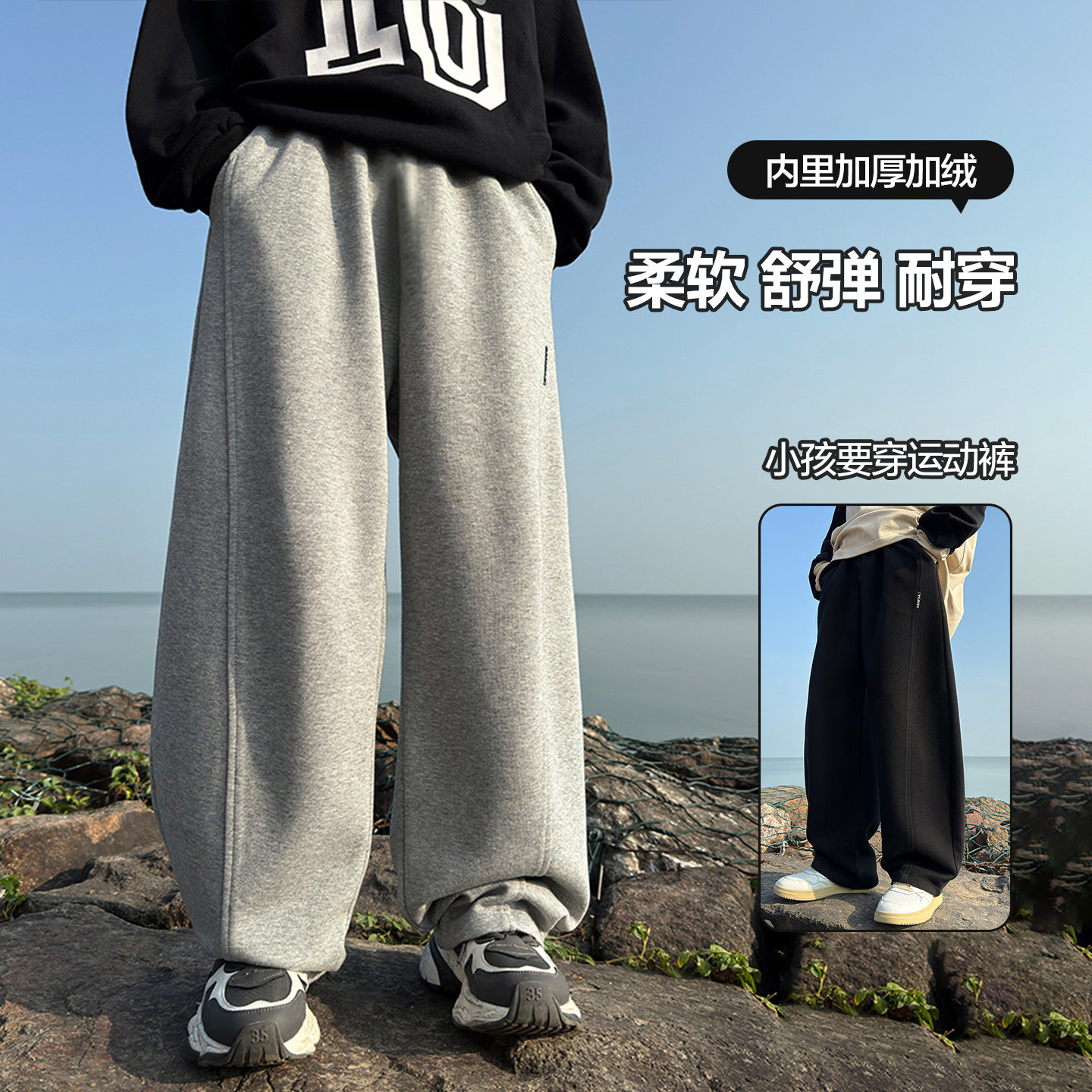 📚 男童冬季韩范灰色弯刀加绒运动卫裤2025新款儿童秋冬加厚阔腿裤子