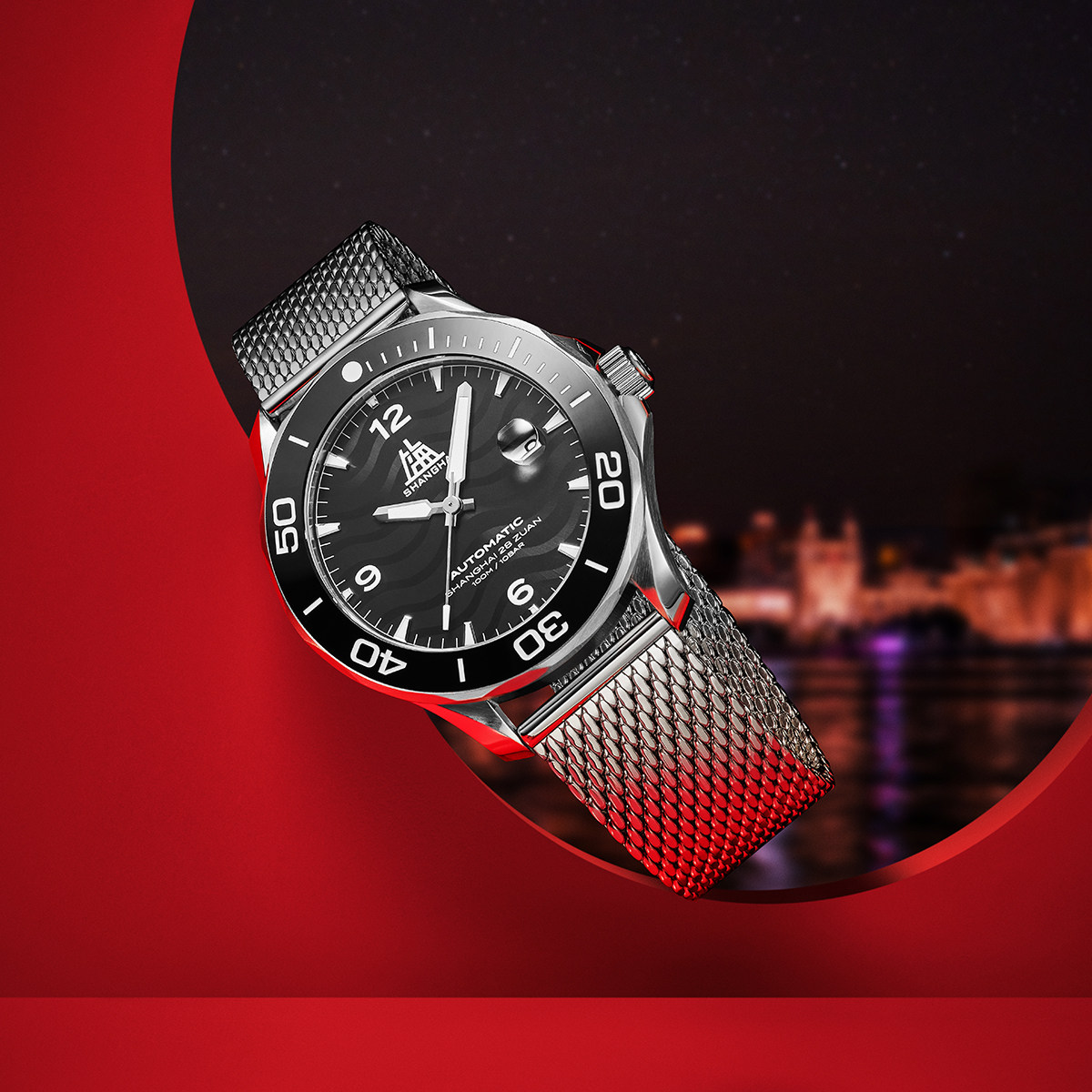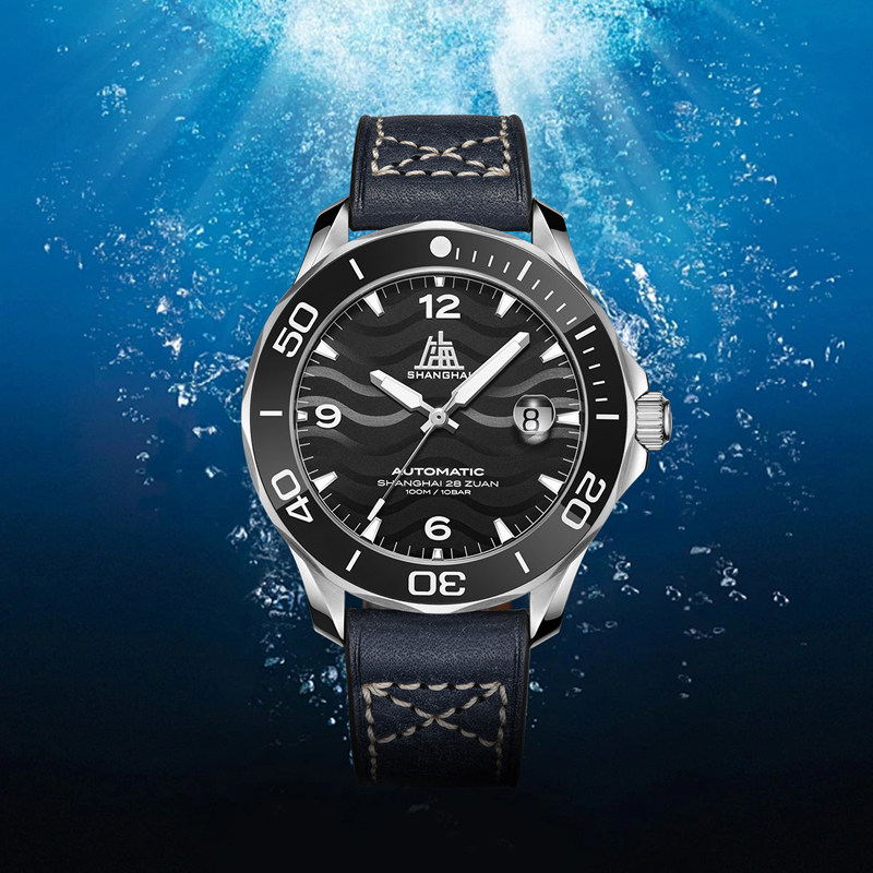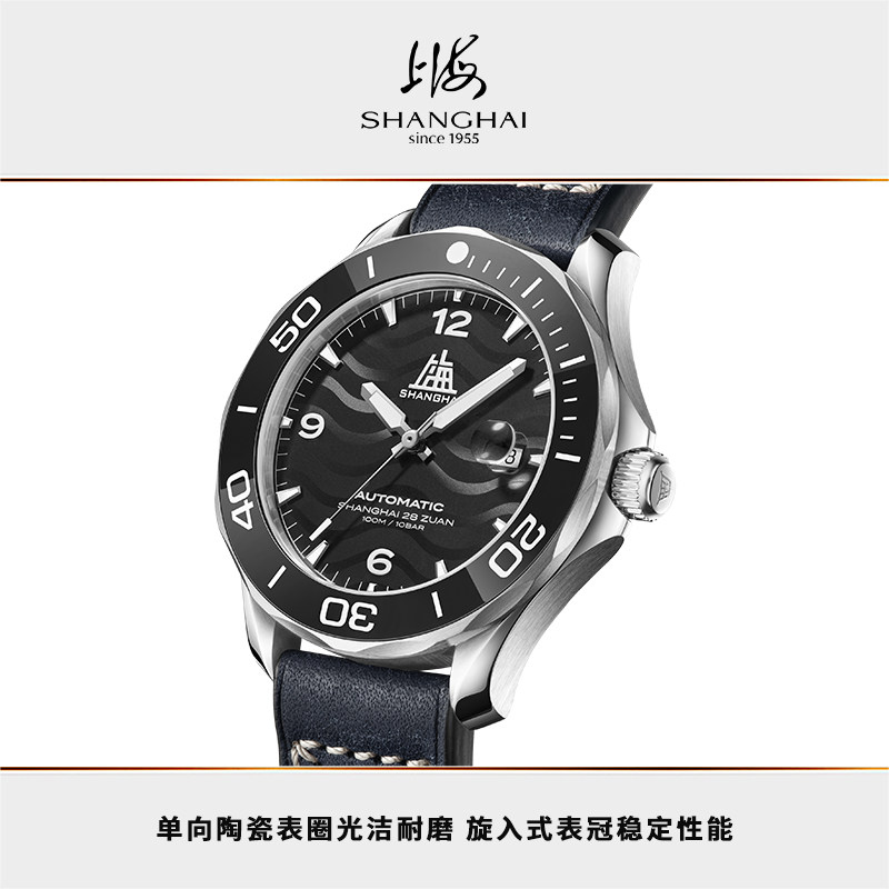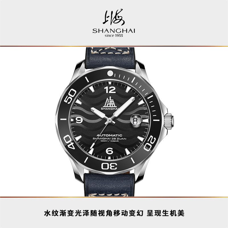 📚 上海手表男款致敬系列引航者水纹表盘夜光机械表