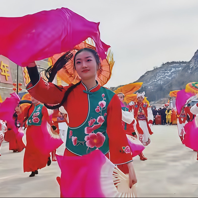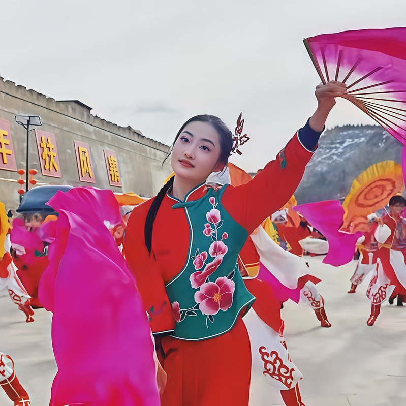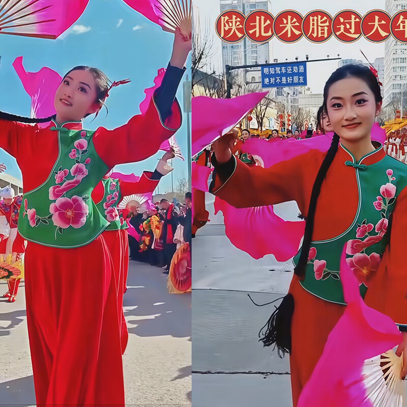 📚 米脂姑娘赛貂蝉陕北秧歌舞过大年演出服红色打鼓服中国风扇子舞女