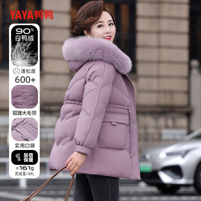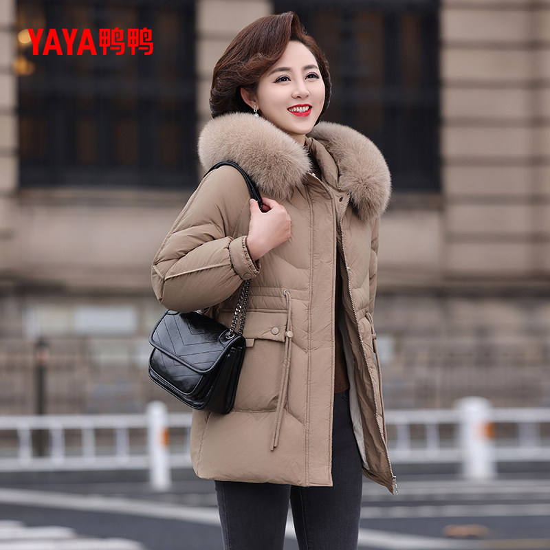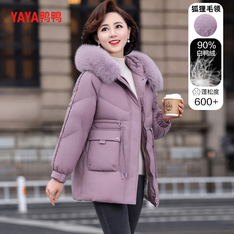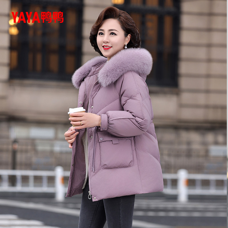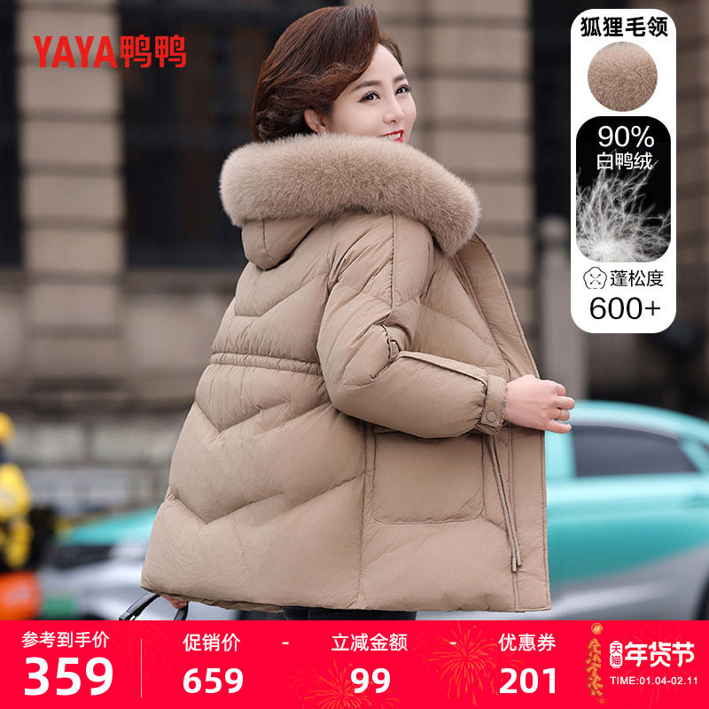 📚 鸭鸭羽绒服2025年中老年女款妈妈装中长款狐狸毛领宽松冬季装外套