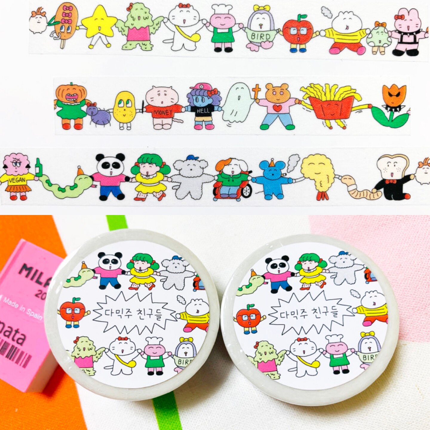 📚 韩国正版oojuiceoo手拉手可爱胶带分装韩系盐系手帐素材装饰diy
