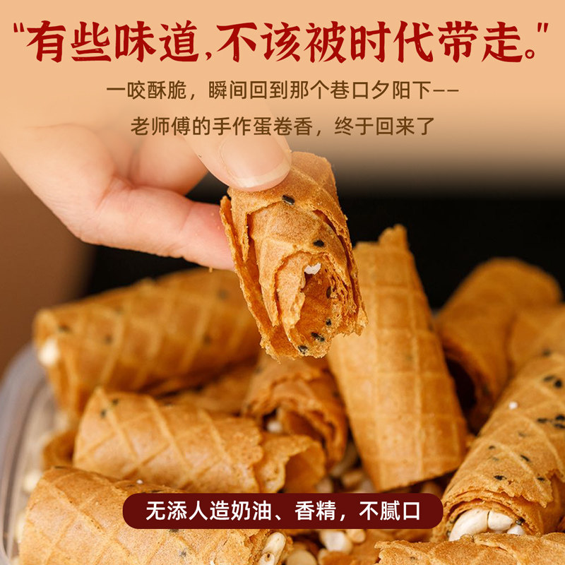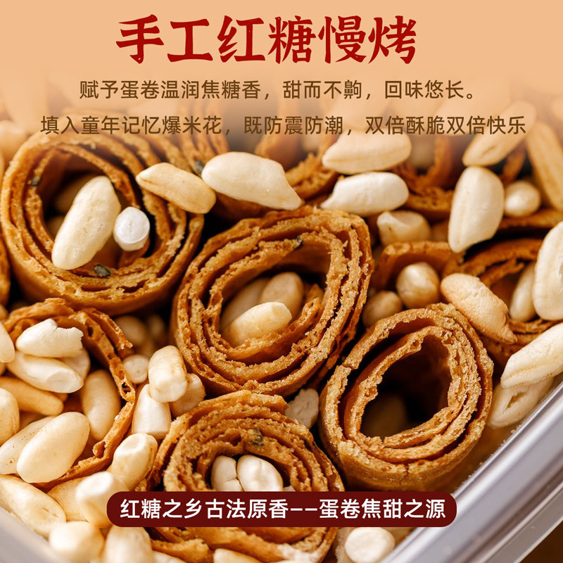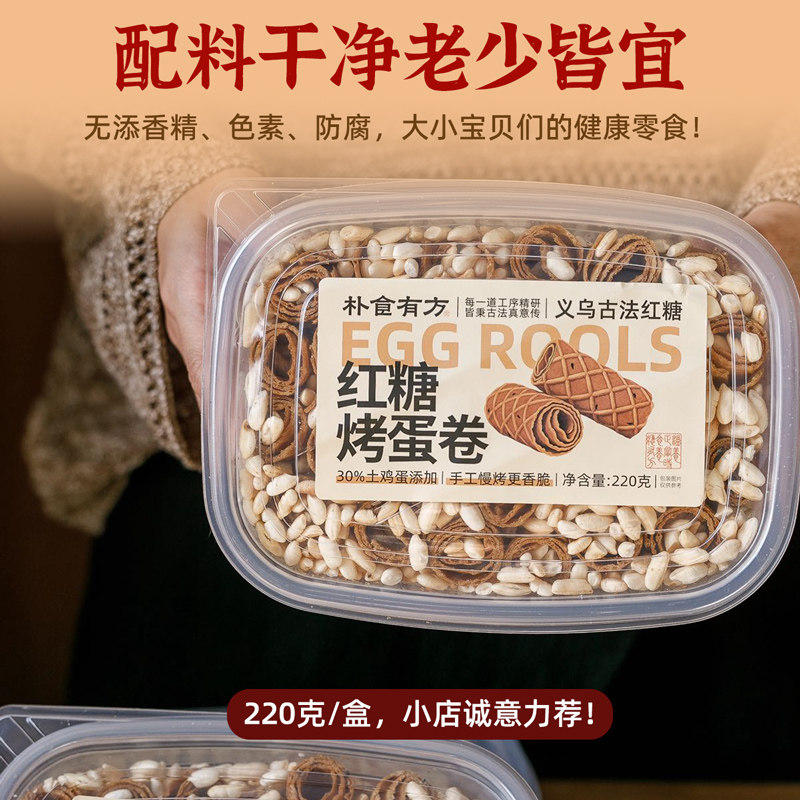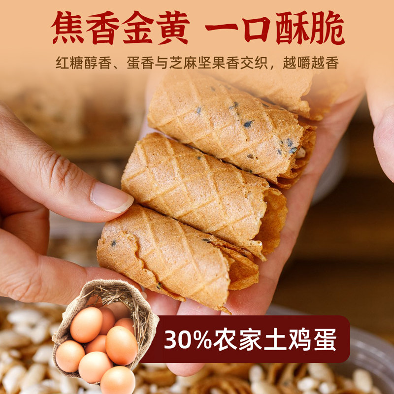 📚 朴食有方红糖烤蛋卷老式手工芝麻鸡蛋卷酥脆饼干零食小吃200g盒装