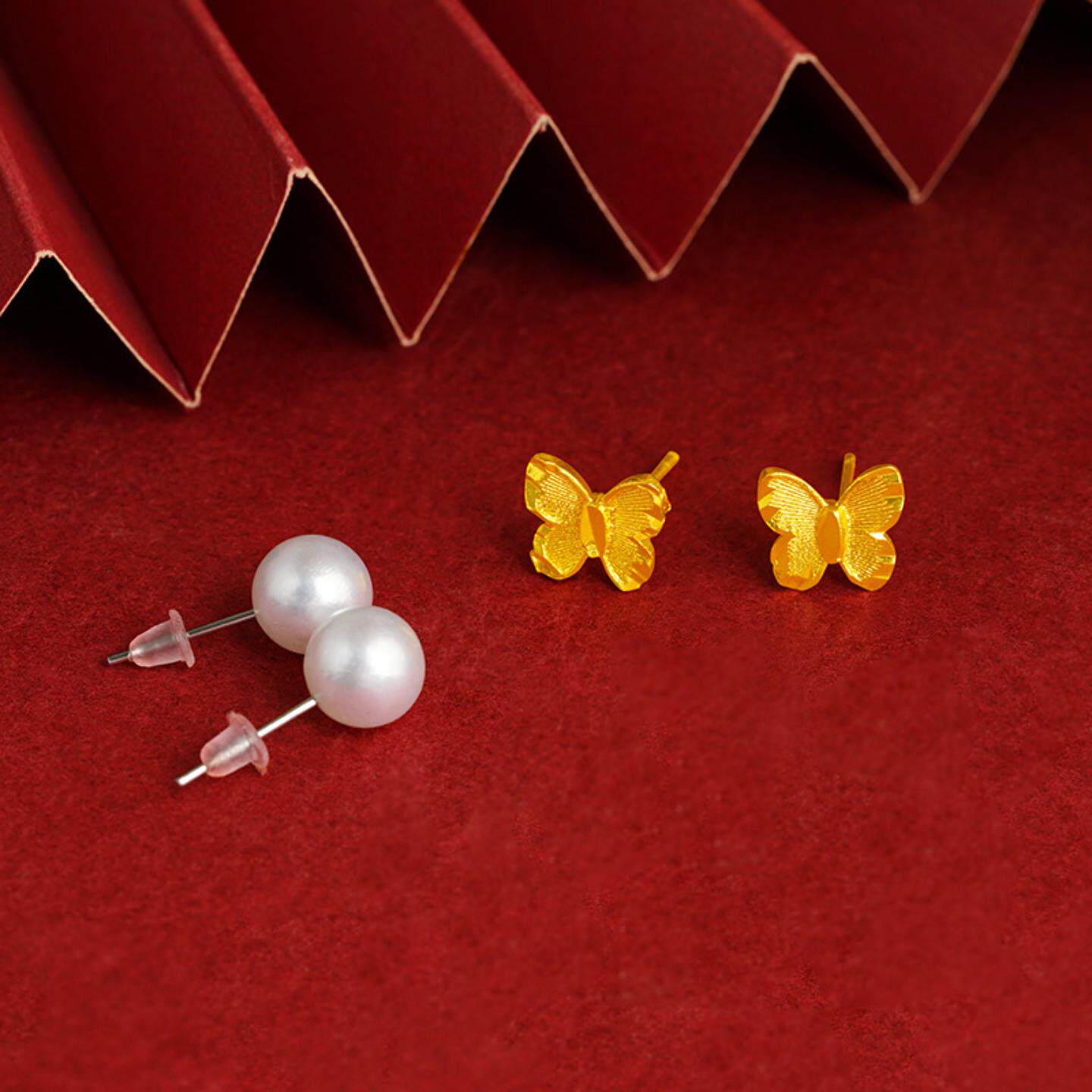 📚 2023新款蝴蝶耳钉时尚简约流行饰品女款耳饰仿珍珠耳针铜合金百搭