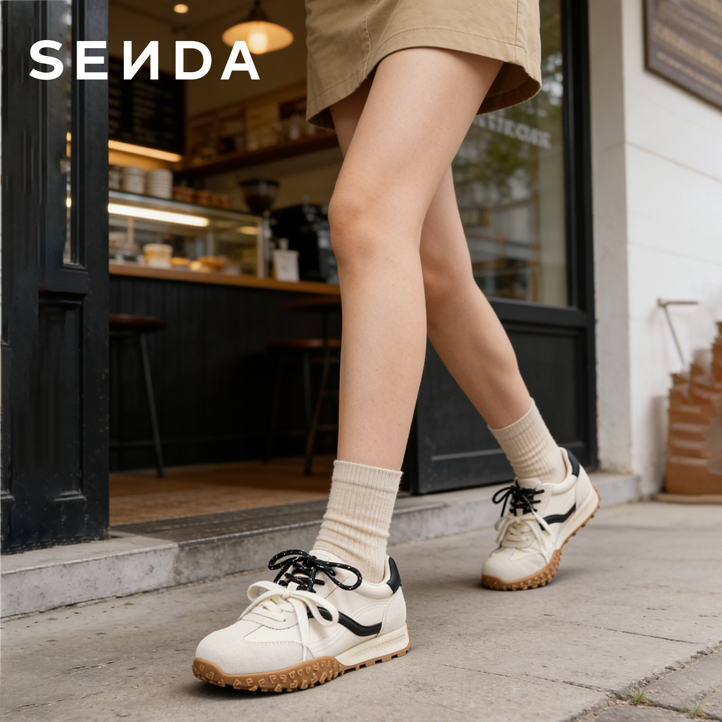 📚 森达厚底德训鞋女款超火复古阿甘鞋棕色运动鞋子增高休闲鞋26新款