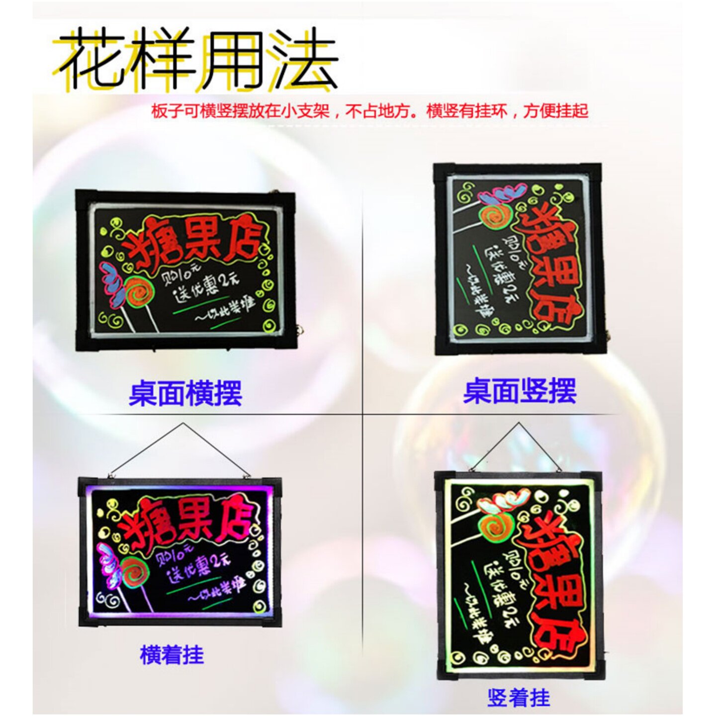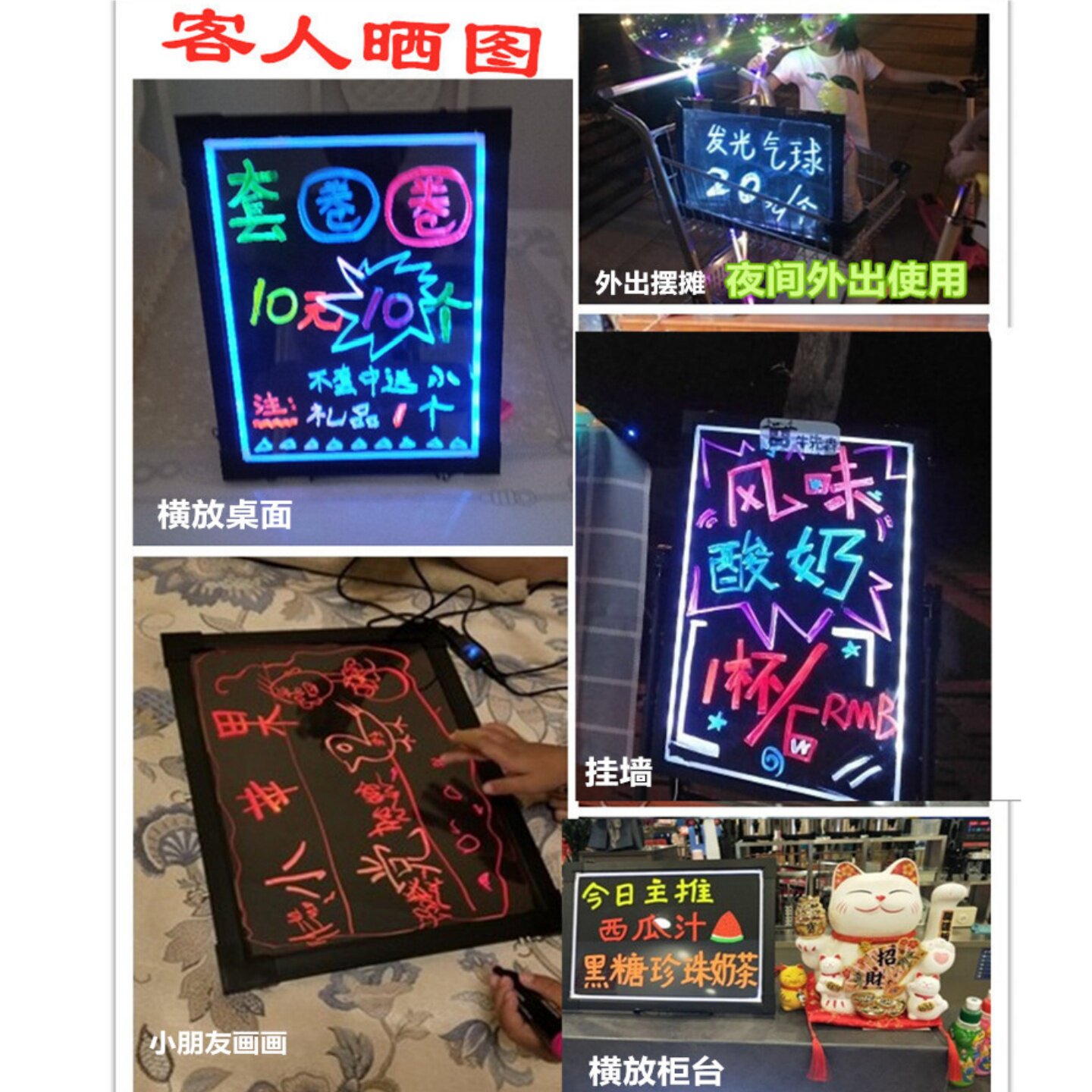 📚 电子荧光板摆摊用台式桌面莹光黑板挂式led屏手写发光字小广告牌