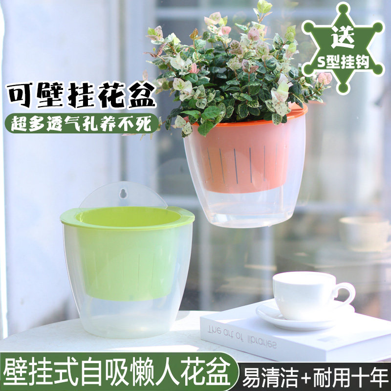 📚 壁挂花盆垂吊吊兰花盆悬挂式花盆透气吊盆挂篮盆栽懒人吸水绿萝盆
