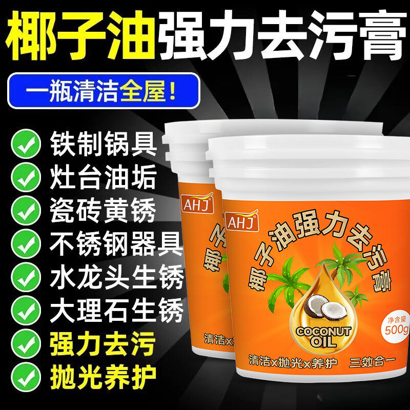 📚 椰子油强力去污膏洗不锈钢多功能清洁剂厨房擦去锅底黑焦洗锅神器