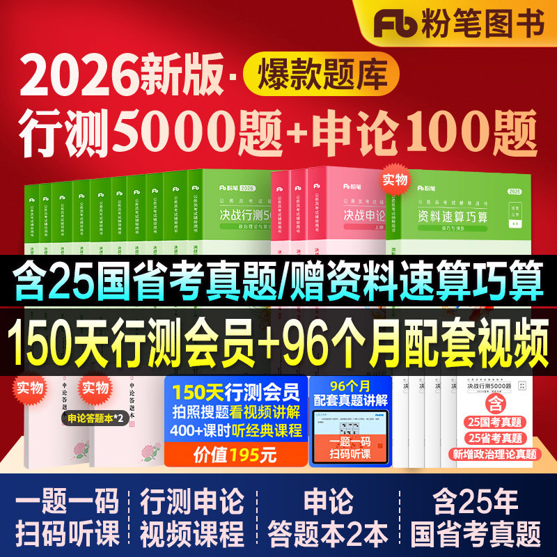 📚 粉笔公考2026国省考公务员考试教材行测5000题五千题决战申论100题2027行测思维申论规矩历年真题试卷980系统班安徽河湖南北海福建