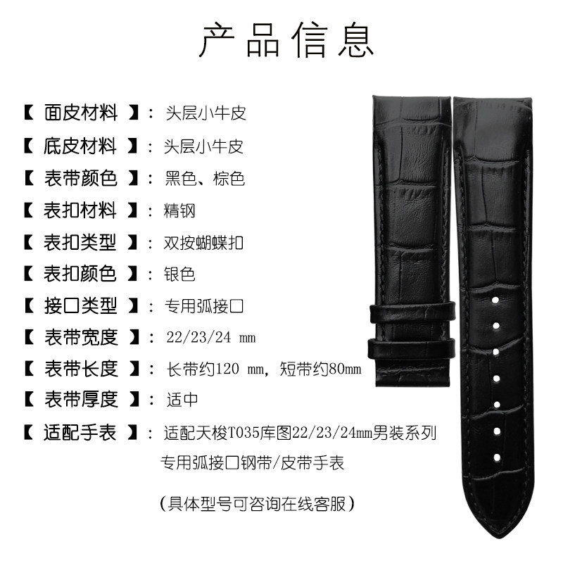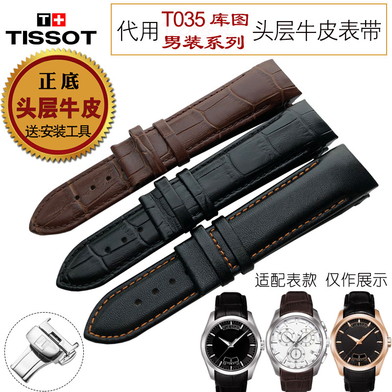 📚 代用1853天梭手表TISSOT库图酷图T035蝴蝶扣专用弧接口真皮表带男