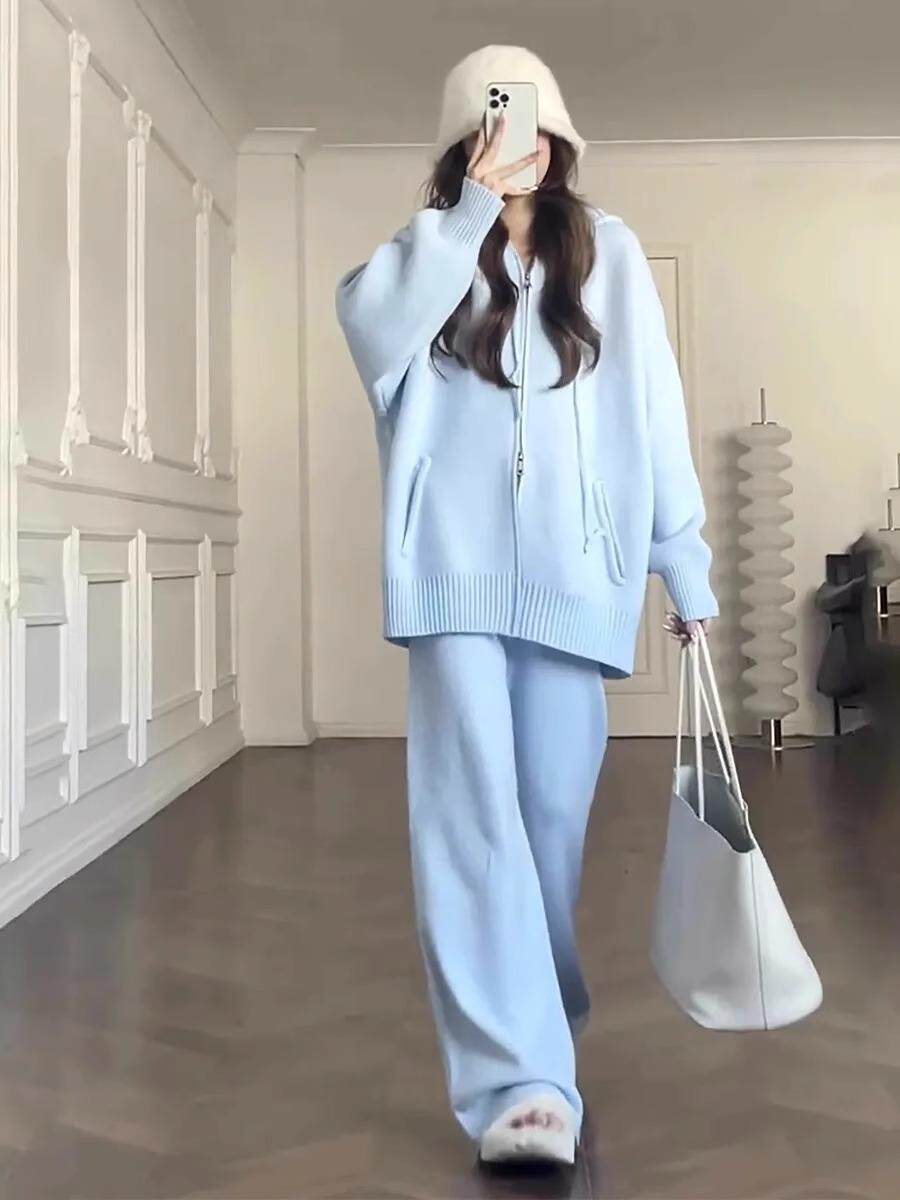 📚 特大码胖mm300斤奶系穿搭时尚针织毛衣开衫套装女秋冬搭配一整套2