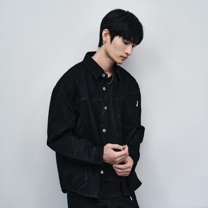 📚 GXG男装 线下热卖黑色激光烧花牛仔衬衫 24年春季新品GFX1E900571