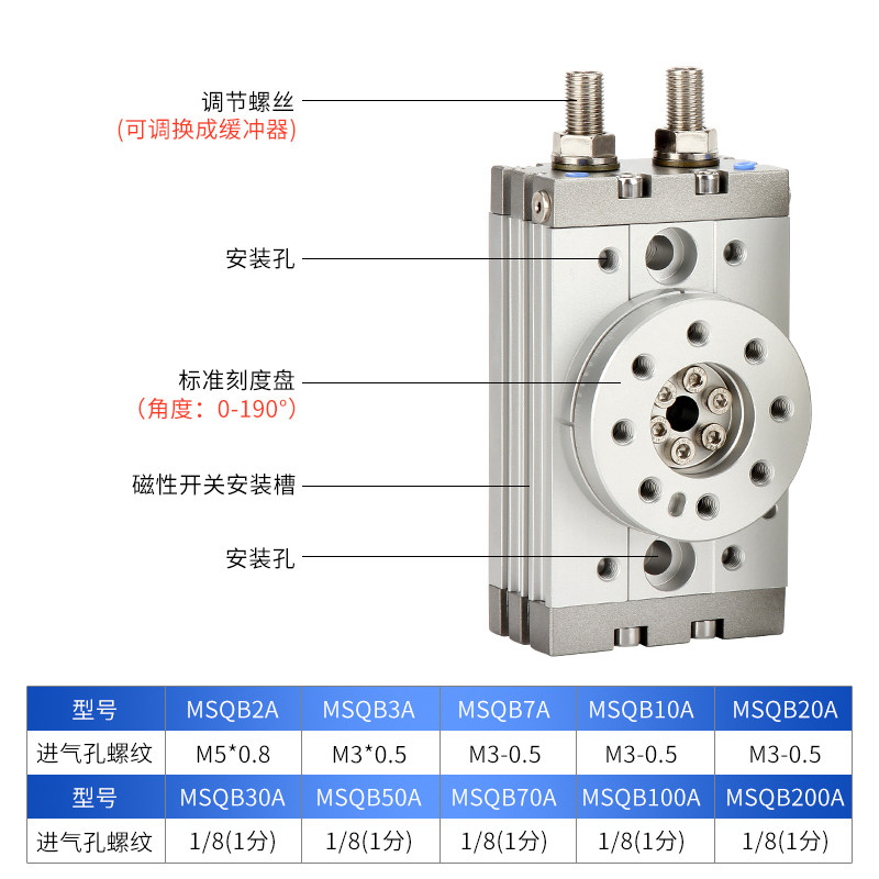 📚 亚德客型气动摆台180度旋转气缸HRQ10A/20A/30A/50A/70A/200R/R