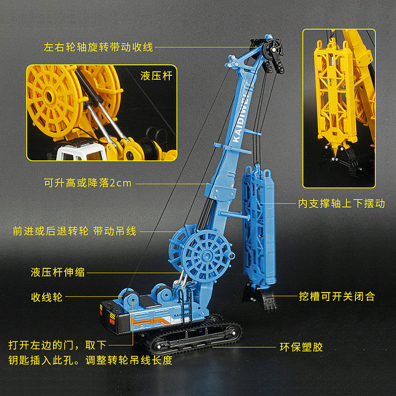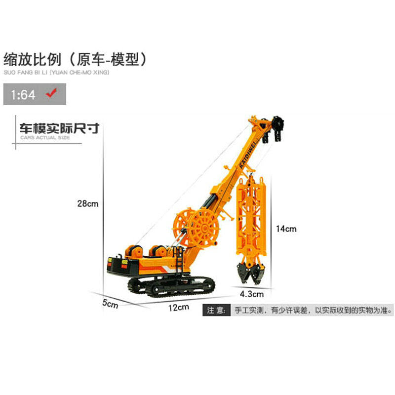 📚 合金成槽机工程车模型1:64打桩机液压抓斗车成槽车打桩模型摆件男