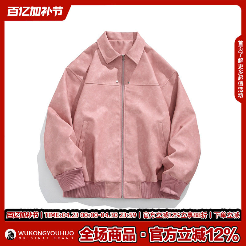📚 悟空有货美式复古棕色翻领皮衣外套男美拉德高级感麂皮绒情侣夹克
