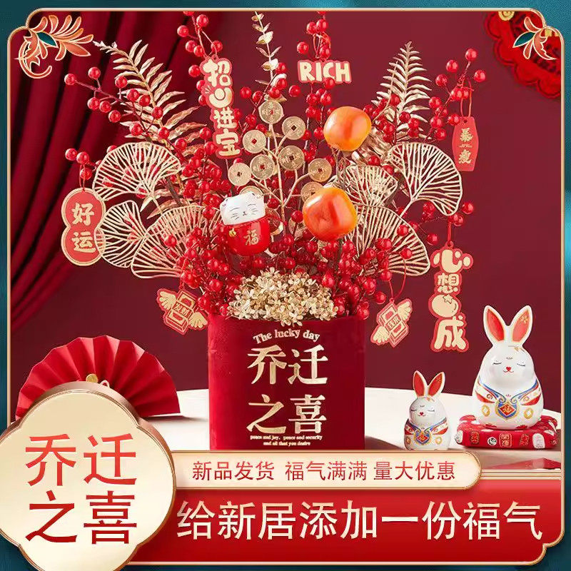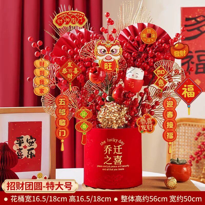 📚 2026新年礼物年宵花福桶diy材料包抱抱桶花桶发财果仿真花束摆件