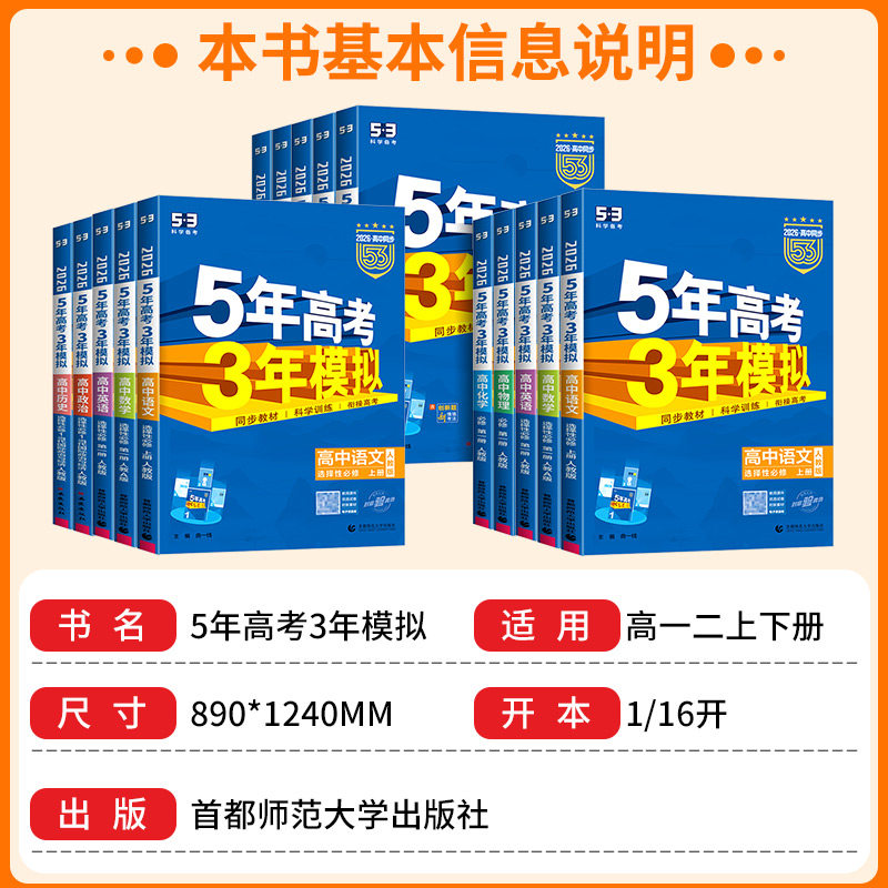 📚 2026版五年高考三年模拟高一高二数学语文英语物理化学生物政治史地人教A版必修选择性必修第一册二53高考同步上中下册教辅资料书