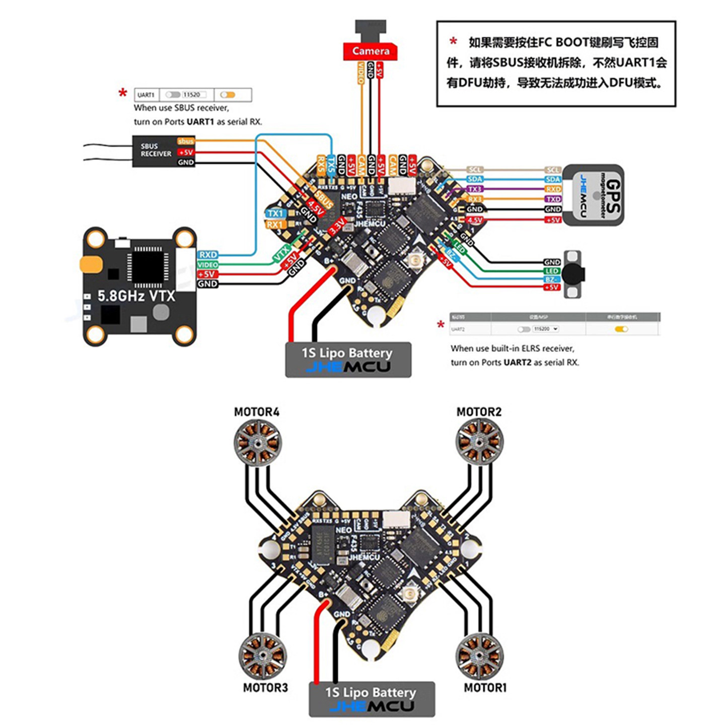 📚 JHEMCU津航F435 NEO AIO飞控1S四合1集成5A电调一体FPV穿越机飞控