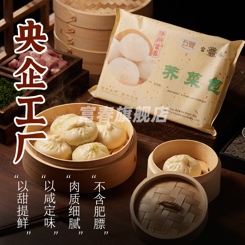 📚 扬州富春包子荠菜包肉包野菜包速食面点早餐面食蒸包蔬菜包