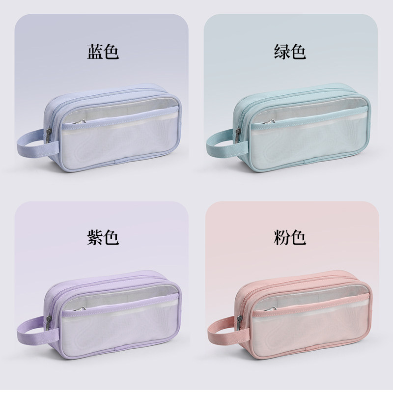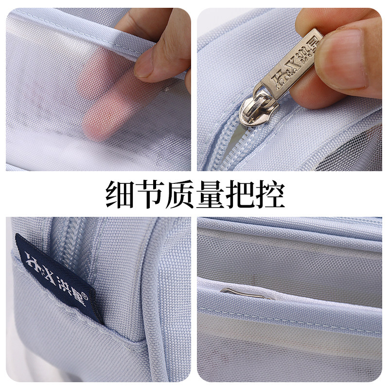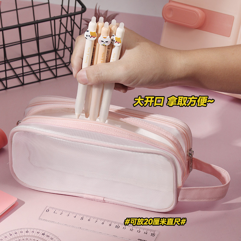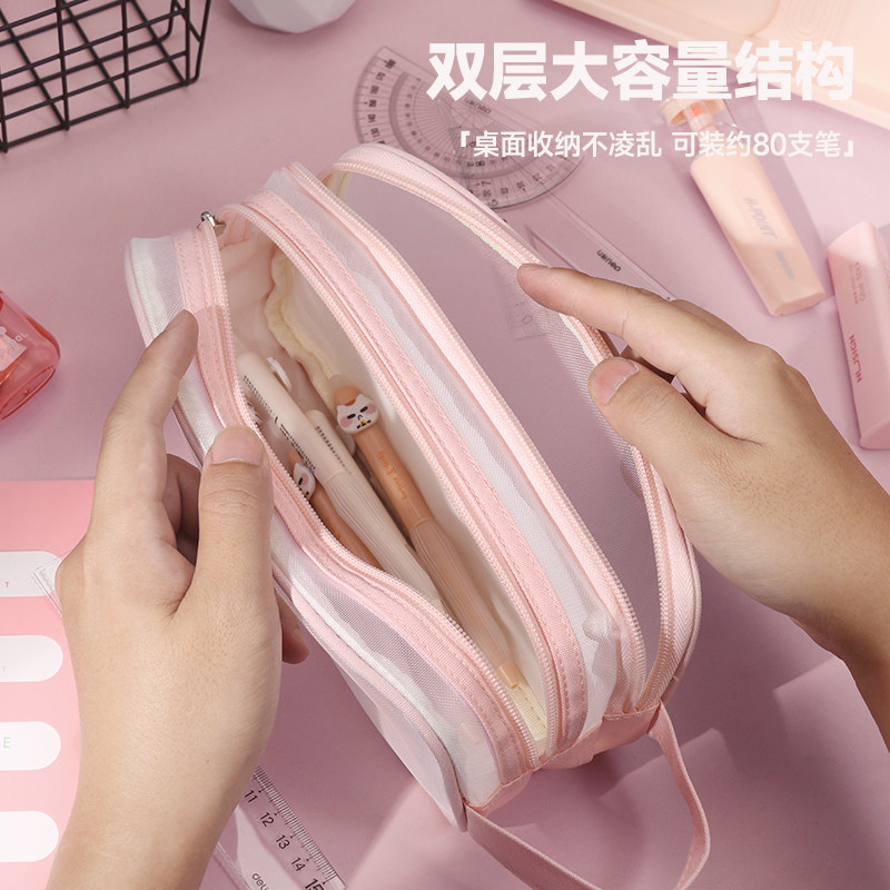 📚 洪星双层网纱笔袋透明笔袋高颜值ins风简约大容量女孩小学生女生男生文具袋考试专用铅笔袋初中生文具盒收纳