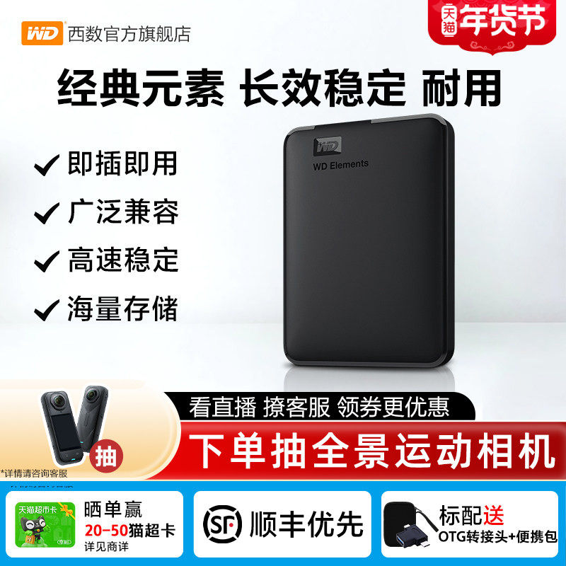 📚 WD西部数据移动硬盘1t元素2t外接4t 5t 6t手机电脑高速机械大容量