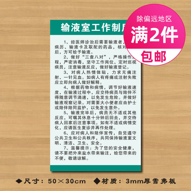 📚 输液室工作制度医院诊所制度牌卫生所规章守则标语医药标识牌ZSZD059